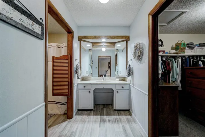 Welcome to an extraordinary residence nestled on the coveted Broadway St! This split-level, walkout basement home offers a harmonious blend of character, functionality, and outdoor beauty- truly a one-of-a-kind opportunity you won’t want to miss! The basement boasts ample space, ideal for a workshop, ultimate man cave, an RV and boat storage, and an attached 2-car garage with additional stalls for tools and supplies! Newly installed Heritage Shingle Black Roof and exquisite landscaping provides gorgeous curb apeal! Sitting on 5 lots, this home provides an expansive outdoor area complete with a back alley entrance to the garage and carports! Spend your days under the shade of 2 magnificent pecan trees or utilizing the concrete spaces for outdoor activities! The heart of the home features a stunning, updated kitchen equipped w/stainless steel appliances and a designer vent hood over a cooktop stove! Enjoy meals at the inviting eat-in bar, perfect for family gatherings and casual dining! Retreat to the spacious master suite featuring newly installed walk-in shower and a huge walk-in closet; French doors lead to a charming outdoor deck—ideal for savoring morning coffee while soaking in the beautiful sunrises & views of the property! For those buyers who can work remotely from home, the large home office space is equipped with a wet bar and loads of custom built-in cabinetry! The airy living room welcomes you with an impressive stone fireplace, complete with gas logs, perfect for cozy evenings spent with family and friends! The location is excellent, ideally situated close to shopping, parks, and the vibrant Cushing Broadway District! This iconic home has endless possiblilities for operating a home business or hobbies in the full walk-out basement with half bathroom! Schedule your private showing today and unlock the doors to your dream home!