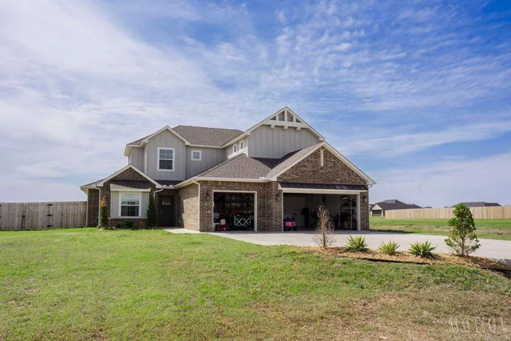 EXCEPTIONAL MODERN HOME IN TRIO RIDGE – PREMIER STILLWATER COMMUNITY Welcome to your dream home in the highly sought-after Trio Ridge community! This stunning 4-bedroom, 3.5-bath residence offers modern design and exceptional craftsmanship on a spacious half-acre lot. From the moment you arrive, you’ll be captivated by the home’s striking curb appeal with brick and board & batten exterior, professional landscaping, and a welcoming covered front porch. Step inside to discover a thoughtfully designed open floor plan perfect for both everyday living and entertaining. The heart of this home is the expansive great room with soaring ceilings, highlighted by modern skylight window, stylish ceiling fans, and a fireplace with elegant stone surround. Large windows throughout flood the space with natural light and provide beautiful views of the surrounding landscape. The gourmet kitchen is a chef’s dream with light cabinetry, quartz countertops, a spacious center island with seating for four, and high-end stainless steel appliances including a built-in wall oven and beverage refrigerator. The adjacent dining area provides the perfect space for family meals or dinner parties. The floorplan offers a sylish floorplan which hides your fridge, and pantry area behind the main kitchen to allow for more storage and entertaining space. The luxurious main-level primary suite offers a peaceful retreat with a spa-inspired en-suite bathroom featuring a sliding barn door entry, double vanity, custom cabinetry, walk-in shower, and generous closet space. Three additional bedrooms provide comfortable space for family or guests, along with a versatile loft area overlooking the main living space. Additional features include beautiful flooring throughout the main living areas, plush carpet in the bedrooms, designer lighting fixtures, a convenient powder room for guests, and a spacious backyard with covered patio perfect for outdoor living and entertaining. Located just minutes from Oklahoma State University and downtown Stillwater, Trio Ridge offers the perfect blend of tranquility and convenience. This non-rental community features spacious lots and peaceful surroundings, creating a serene environment to call home. Don’t miss this opportunity to own in one of Stillwater’s most desirable new communities! ***Video Tour – https://youtu.be/nDAPoTpshl8 – ***