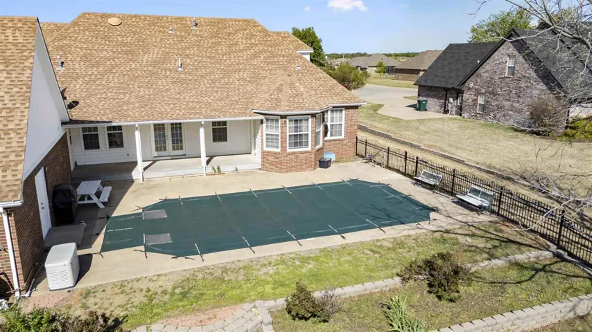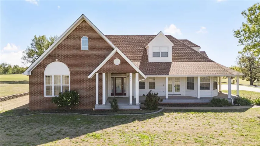 HUGE PRICE IMPROVEMENT ???? NOW: $109 a sq ft!! LOOK at this opportunity: modern farmhouse w/wrap around porch, in ground pool with wrought iron fence overlooking Perry Golf & Country Club! This home is one of the most unique homes in the Fairway addition. All maintenance items are completed (clean home inspection on file) allowing the new owners to reap all of the return on investment from cosmetic updates. Clean and move in ready, this home offers over 3400+ sq ft, with the primary bedroom on first floor, along with home/office and 2 very large bedrooms upstairs. Quality built home, all spaces have been used to optimize the floorplan. Large unfinished space above 3 car garage and walk in storm shelter and Generac back up power generator (serviced annually) and sprinkler system are a few additional amenities. Call today! Buyer agents welcome