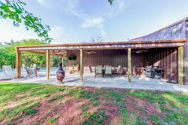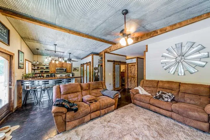 One-of-a-Kind Barndominium on 10 Acres with Pool & Creek! Welcome to your private retreat! This unique 2-bedroom, 1-bath barndominium is nestled on 10 unrestricted acres, offering the perfect blend of comfort, charm, and functionality. The 30×30 living quarters feature concrete floors for easy maintenance and a modern rustic feel. A stackable washer/dryer and refrigerator are included (not warranted), making this home move-in ready. Step outside and enjoy your 20×40 heated gunnite chlorine pool, perfect for relaxing or entertaining, complete with a pool house equipped with electricity. The oversized 20×40 garage includes a cozy wood-burning stove—ideal for a workshop, studio, or hobby space. Surrounded by mature trees and a picturesque creek, this property offers peace, privacy, and natural beauty. Enjoy mornings on the covered porch, afternoons by the pool, and endless opportunities to make this space your own. No deed restrictions—bring your animals, toys, or dreams! Whether you’re looking for a weekend escape or full-time country living, this barndo is truly one-of-a-kind. CALL TO VIEW TODAY!!