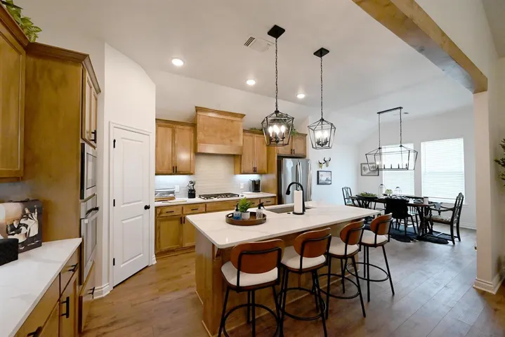Astonishing and “like new”, this home is still under the builder’s warranty until September 6, 2025. Nestled against a serene greenbelt, this property offers a perfect blend of comfort, elegance, and thoughtful design. Open-concept kitchen, dining, and living space, perfect for entertaining. Modern stainless appliances, a gas cooktop, and a walk-in pantry for your culinary needs. Cathedral ceilings and large picturesque windows fill the home with natural light. Split-bedroom arrangement ensures privacy and a peaceful retreat for everyone. Raised cabinetry in the primary bath provides additional storage with style. Gas log fireplace for cozy evenings. Relax and unwind on the back patio as you take in breathtaking sunsets. The property backs up to a large open fiend and woods, offering privacy and a beautiful natural backdrop. The wildlife abounds with deer, a large variety of beautiful songbirds, squirrels, etc. This home effortlessly combines practicality with stunning aesthetics, making it a true standout. Don’t miss this chance to own a property that offers both modern convenience and tranquil living. The neighborhood is centrally located within minutes of Oklahoma State University, walking/biking trails and eclectic downtown Stillwater.