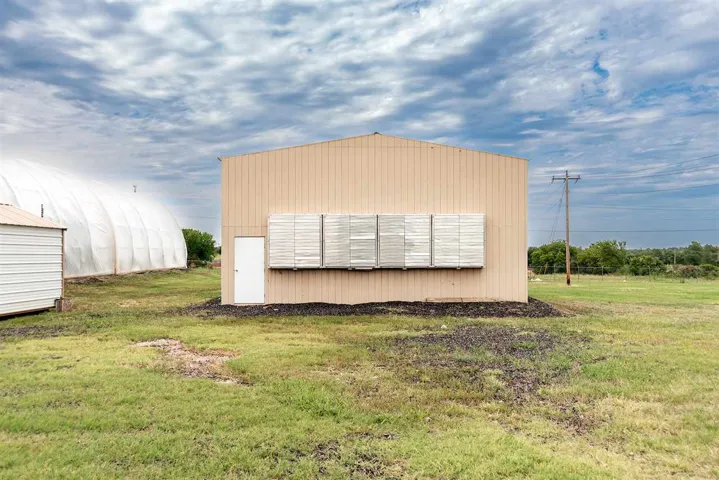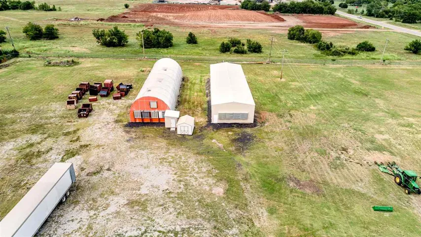 Great Commercial Investment Opportunity! The 8.78 acres m/l of land runs along highway 177 for easy access and is protected by a 6 foot security fence. This rare property has plenty of gravel parking and 5 different buildings that offer future buyers numerous business opportunities. The main office building is 57X50 (could have living space if needed) is heated/cooled, equipped with 2 restrooms, a front entry area to conduct business, along with 3 private office spaces and a workshop area. The next building is a 60X40 shop with an electric overhead door (18X14), rear overhead door (10X10), bathroom and electricity, perfect for working on vehicles or other projects. The third building is a 24X24 storage building that has been insulated with spray foam and also has electricity. Attached to the westside of the building is covered parking (20X24) for an RV including 220 electric for the RV. Just to the north of the storage shed there is also covered parking (22X38). The last two buildings are large commercial greenhouses containing 3,200 sf and 3,100 sf. The green houses feature water coolers, perforated felt flooring and retractable black out coverings. Property also has 3 phase and 220 electrical along with city water, natural gas and an aerobic septic systems (2 yrs. Old). Two large billboards are on the property and generate $400 a month in revenue. Additional $1,000 a month income from parking a semi trailer on property, month to month lease. Property could be rented for $3,500 a month, prefer year lease with annual payment.