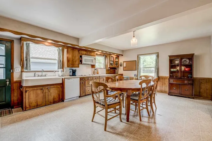 This spacious 4-bedroom home offers classic charm with modern updates. Inside, you’ll find beautiful wood floors, a cozy wood-burning fireplace and a large eat-in kitchen with tons of storage. The primary bedroom is on the main floor, with three more roomy bedrooms upstairs. The finished basement includes a kitchenette and half bath—perfect for guests or extra living space. Recent updates include new windows, siding, HVAC and water heater. Detached garage with laundry area completes the package. Plenty of space, comfort and character—don’t miss it!