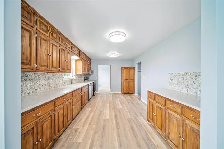 COMPLETELY RENOVATED, MOVE IN READY. THE SELLER HAS AN OPPORTUNITY TO PROVIDE A LOWER INTREST RATE. Looking for a charming country home that has it all? Look no further! This fully renovated and updated home combines modern amenities with timeless country warmth. The large kitchen is a standout feature, equipped with new stainless appliances and quartz countertops that will make cooking a pleasure. Convenience is key with a well-placed laundry/mudroom area adjacent to the kitchen. All 3 bathrooms are elegantly designed with quartz countertops! Downstairs, you’ll discover a large living area, ready to be a game room or movie theater, two sizable rooms with closets that can be used as bedrooms, and a large full bathroom. Enjoy serene evenings on the spacious east-facing front porch. A matching brick shop close to the house provides easy access to work or hobby space. This country home offers the perfect blend of tranquility and convenience. Don’t miss out on this exceptional opportunity! .75 acres +/-