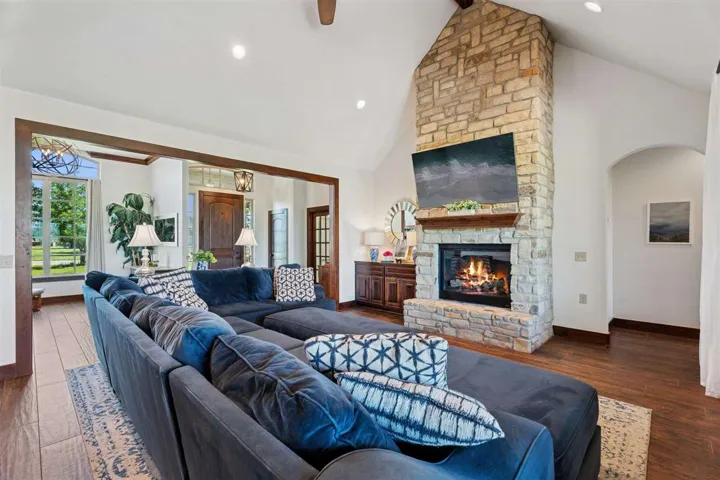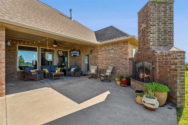 Situated on a half acre lot overlooking a hay meadow, this gorgeous 4 bedroom, 3.5 bathroom home with office and formal dining room is ready to be your next home! Open concept layout great for entertaining with large living room with fireplace and generous windows for lots of natural light, chef’s kitchen with two islands, granite counters, wine fridge, double oven and a walk-in pantry, breakfast nook as well as a formal dining room. Master suite includes a door to the back patio, large windows, huge walk-in closet, and a bathroom with oversized shower, Jetta tub and double vanities. Secondary bedrooms are good-sized with walk-in closets, two of them share a bathroom and another has its own en suite bathroom. Patio includes an outdoor kitchen with fridge, sink and grill, as well as an outdoor fireplace. Wooden window shutters throughout the home and lots of storage! Nice laundry room with mud bench, sink and even more storage just off the 3 car garage which has an above ground storm shelter. Located on the north side of town with quick access to the Cimarron Turnpike, has a neighborhood lake and is also close to Lake McMurtry. Built in 2017, this home has been well maintained and cared for. Call today for your private showing!