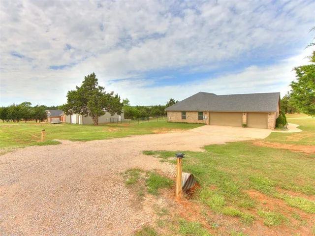 Dreaming of wide open spaces and room to roam? This beauty sits on a corner lot with 1 acre (MOL) and comes packed with everything you need—and then some! With 3 bedrooms, 2 bathrooms, and a 3-car garage, there’s space for everyone and all their toys. Love to tinker or need extra storage? You’ll flip for the 30×40 shop w/electric—perfect for projects, hobbies, or serious garage goals. Inside, enjoy high-end touches like granite countertops, stainless steel appliances, extra built in cabinets/countertops, a kitchen pantry, and spacious closets throughout. Storm season is approaching, but don’t worry, There’s a storm shelter already in place. Relax on the covered front porch, or fire up the grill and entertain under the covered back patio—hello, summer nights! And for all you animal lovers and aspiring homesteaders out there — yes, you can bring your feathered friends! This community proudly allows backyard chickens. That’s right — fresh eggs, happy hens, and a little country charm, right in your own backyard. It’s just one of the unique perks that makes living here feel a little more like home. Whether you’re starting your homestead dream or just want to spread out and breathe, this place has “home sweet home” written all over it.