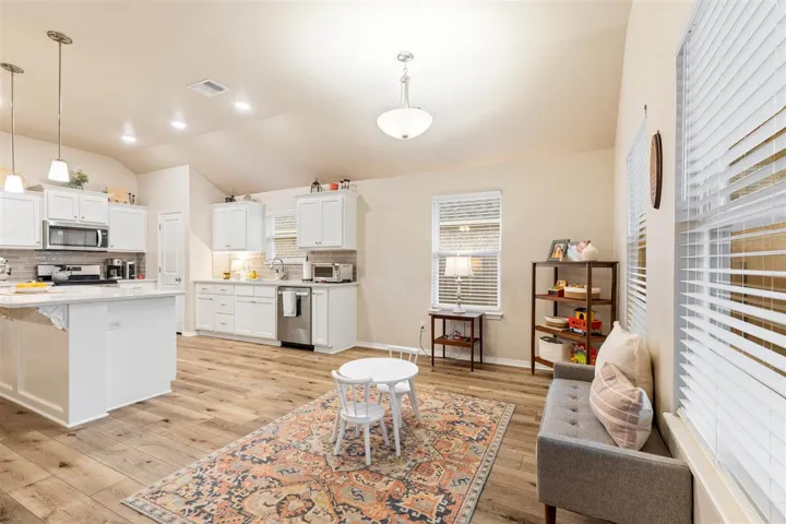 Discover your dream home, just completed in September 2022 by Ideal Homes, nestled in the desirable community of The Canyons. This stunning property features three spacious bedrooms, a dedicated study, and a versatile “flex room” that can serve as a formal dining area, a second living room, or a playroom, perfect for your lifestyle needs. Conveniently located across the street from a playground, serene pond, and common area, this home offers both comfort and convenience. As you step inside, you’ll immediately understand why this floorplan is so well loved. The open layout showcases an open floorplan, split bedrooms, and impressive 10 foot ceilings, creating a welcoming and airy ambiance. Luxury vinyl plank flooring flows seamlessly through the entryway, living room, kitchen, formal dining room, and breakfast area, enhancing the beauty of the entire space. The expansive living room, complete with a cozy fireplace and plenty of windows for natural light, is open to the kitchen and breakfast room. The kitchen, adorned with stunning Quartz countertops, white painted cabinetry, a large central island, stainless steel appliances, sizable pantry, and a gas stove, is sure to inspire culinary creativity. The study, located just off the entryway, features elegant glass French doors and two large windows that flood the space with natural light, ideal for productive work sessions. The primary bedroom is a true retreat, accommodating a king size bed and boasting a generous walk in closet. The bathroom is equally impressive, featuring double sinks and a beautifully tiled walk in shower. Step outside to enjoy your private outdoor oasis, complete with covered patios in both the front and backyard, enclosed by a privacy fence. Additional features added to the home include: home gutters for water management; a 6-8 person in-ground storm shelter for peace of mind; the garage was custom designed to extend an additional 4 feet in length, ensuring ample space for all vehicles to fit comfortably; an exterior garage side door was added plus exterior concrete; Custom two inch blinds cover all home windows for privacy. This energy efficient home is packed with perks, including a limited structural warranty valid until September 2032, a fresh air ventilation system to combat allergies, and double pane vinyl framed windows. The Canyons community provides a tranquil environment while keeping you just minutes away from shopping and dining options. Enjoy access to a large community fishing pond, sidewalks for leisurely strolls, and a vibrant playground. Plus, this home is situated in the highly sought after Richmond school district! Don’t miss out on this incredible opportunity, schedule your viewing today! Plus check out the virtual tour online!