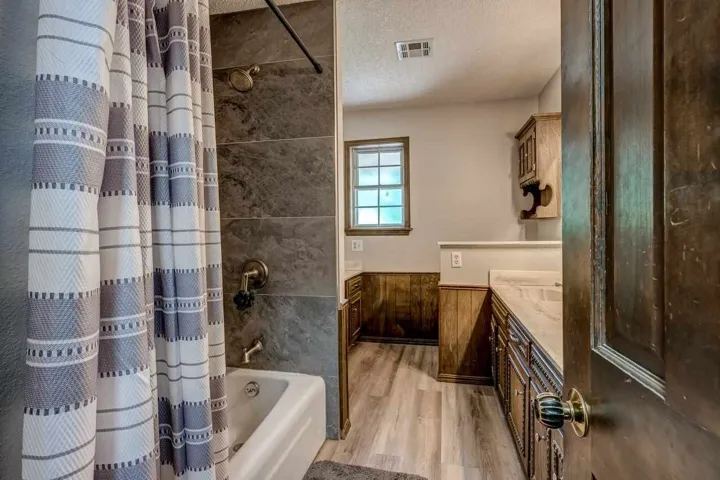 This charming 4-bedroom, 2.5-bathroom home is awaiting its next owners. The home is located in a prime location near amenities and Oklahoma State University providing endless opportunities for its potential as an Airbnb, rental or simply a beautiful home in a great location. It offers a spacious living room featuring a cathedral ceiling and a cozy fireplace. The formal dining area can also easily serve as an additional living space. Enjoy the updated kitchen, with granite countertops, that seamlessly connects to the living room and breakfast area. Appreciate the luxury vinyl plank flooring throughout the primary living spaces of the home. The guest bathroom features an updated shower/tub, has dual sinks and a separate vanity area adding extra convenience. The primary suite is large and the bathroom has an updated walk-in shower. There is ample storage space throughout the home and a small shed in the backyard for additional storage options. This home is inviting with a warm atmosphere, intricate moldings, updated spaces and nestled in the heart of Stillwater!