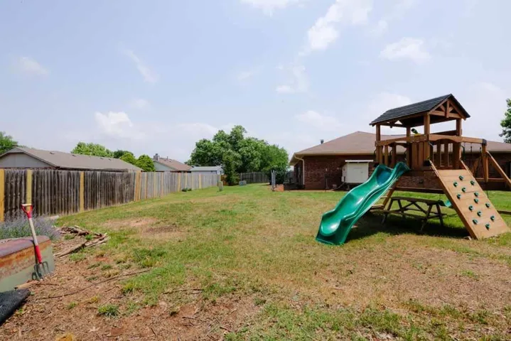 $15,000 towards closing costs or upgrades!! Natural light pours through the updated windows, the galley kitchen is roomy, has lots of counter space and comes with a pantry, the dining area overlooks the backyard, the living room is oversized and has a cozy gas log fireplace and built-in storage. This home has 3 bedrooms AND an office! It’s located close to Sangre Ridge Elementary and Stillwater Middle School at the end of a quiet cul-de-sac. Exterior was recently painted and water heater is 5 years old. Extra perks that stay with the property: a chicken coop, playground (less than a year old), Vivint security system, and Ring doorbell! Walk-in tornado shelter in the garage. Make and offer on this fabulous home!