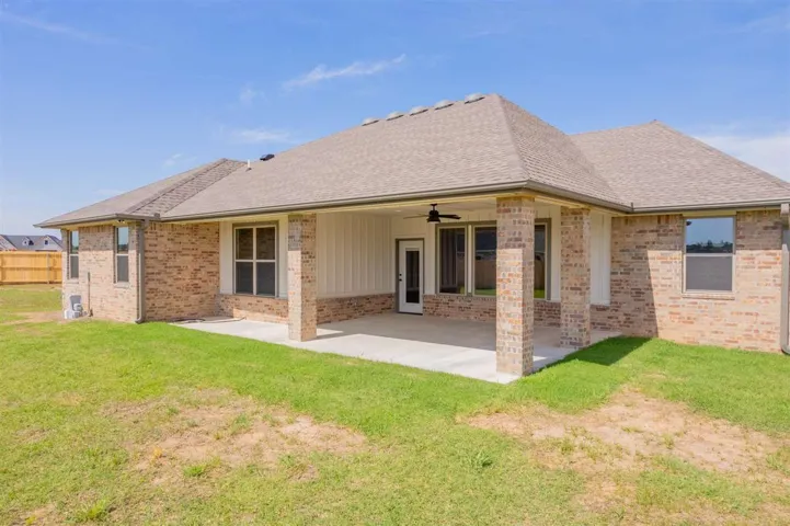 This new built home in Trio Ridge is a show stopper! This 4 bedroom 2 1/2 bath home features an open floor plan in the living, dining and kitchen area (builder willing to change backsplash, if buyer wants something different). Beautiful wood look tile floors throughout. 1/2 bath just off entrance for your guest makes for an added feature. The large windows in the living room offer great light and gorgeous views, along with fireplace and tall ceilings and beams round out this comfy area. The covered back porch will be perfect for those fall evenings. The main bedroom suite features a large bedroom and bathroom with double vanity and huge closet with lots of built-ins. The laundry room features a sink and plenty of space. This home has tons of detail, ample storage, and all the extras one could want. There is a moveable storage unit that could be used as an entry table, a buffet in the kitchen, or media station in the living room. The large fenced in back yard with 6 ft privacy fence makes for nothing to be done, but move-in! Most homes do not come with this feature!! This home won’t last on this quiet cul-de-sac. Call today to set up a showing.