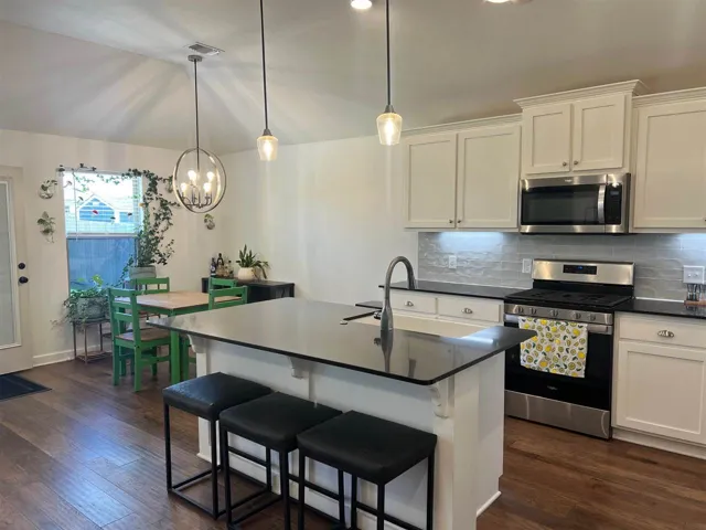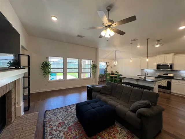 Discover this stunning, like-new home in the highly sought-after Canyons subdivision! Featuring 3 to 4 spacious bedrooms, one bedroom doesn’t have a closet but could be bedroom, office or flex room, this home perfectly blends comfort and functionality. The open-concept floor plan offers a desirable split-bedroom design, seamlessly connecting the modern kitchen to the inviting living area—anchored by a cozy fireplace. The kitchen is a chef’s dream, boasting elegant granite countertops, a stylish tile backsplash, and an expansive island with seating—perfect for entertaining while preparing meals. Step outside to your private backyard oasis, complete with a covered back porch, an extended patio, and a fully fenced yard—ideal for outdoor gatherings or peaceful relaxation. The generously sized bedrooms provide plenty of space, while the luxurious master suite features a large walk-in closet and a spa-like master bath. Don’t miss this incredible opportunity to own a beautifully designed home in a prime location!