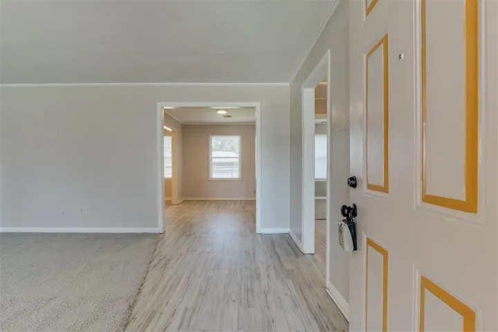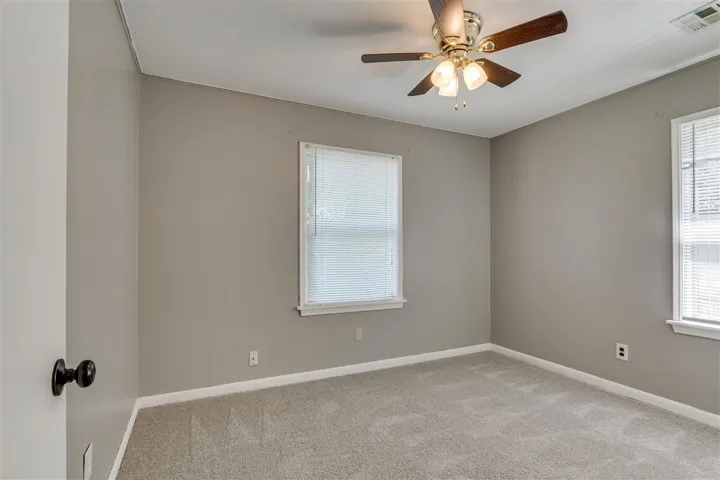 Affordable 3 bedroom home in The Village! NEW FLOORING – move in ready! Carpet in living and all bedrooms, vinyl plank in entry, dining room, and hall. FRESH! Neutral color scheme. Living room has space for additional sitting area/office or plants in front of the window. Gas stove, dishwasher, refrigerator, desk area, linoleum flooring in kitchen. Eat in area, as well. Garage converted to 3rd bedroom – has a closet and lots of space. Nice storage in other 2 bedrooms. Retro tile in bathroom – new vanity. Tub/shower combo and window with glass blocks. Mud room/utility area with new carpet. Newer water heater. HUGE backyard! Imagine you outdoor living space. Room for fire pit, swing set, trampoline, table and chairs. 2 sides new fence. Storage shed in backyard. Room for additional structures, if desired. Check it out soon! 🙂