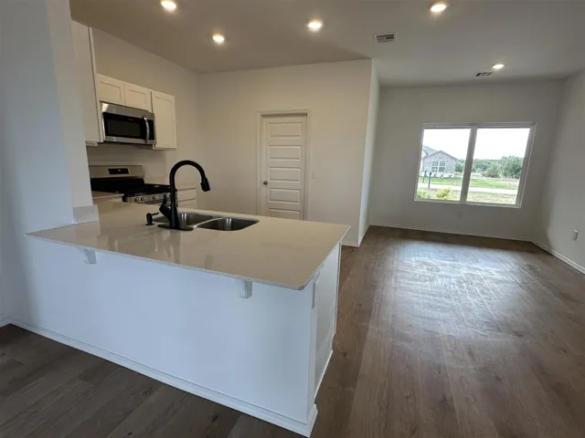 The LOWELL floor plan is a modern single-level home with a spacious living room ideal for entertaining guests, followed by a well-equipped kitchen and an intimate breakfast area arranged in a desirable open floorplan. Tucked to the side of the living room is the tranquil owner’s suite with an adjoining bathroom and walk-in closet. The remaining two bedrooms are tucked away at the opposite side of the home with easy access to a hallway bathroom. Prices, dimensions and features may vary and are subject to change. Photos are for illustrative purposes only.