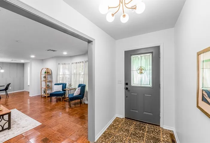 A true mid century modern gem in the heart of Stillwater! Carefully curated with the character and charm of an older home yet updated with all the modern touches! Large lot with mature trees close to schools, shopping, restaurants, and OSU! A peaceful, well established neighborhood with a lovely backyard set up for relaxation and entertaining family and friends. Lovely shared pond with a dock. Two living areas, wood beams, accent walls and a wide open beautiful, chef’s kitchen and an abundance of storage! Kitchen has stainless appliances and pull out drawers that soft close, as well as barn door accents.This stunning sunroom boasts vaulted ceilings with exposed wooden beams, modern ceiling fan, and stylish globe pendant lighting. Multiple large windows and skylights flood the space with natural light, offering serene views of the surrounding trees and garden. The sleek double doors open to a peaceful outdoor area, creating a seamless indoor-outdoor living experience. Elegant wood-look tile flooring and crisp white walls make this the perfect space for relaxing or entertaining. You will absolutely not ever want to leave the amazing sun room that is full of windows to enjoy the lovely backyard. The mud room is beautifully designed with an oh so practical lay out. Do not miss this well cared for and updated home in the heart of Stillwater with all of the modern touches and the charm of past glorious times. New HVAC is the icing on the cake as well!