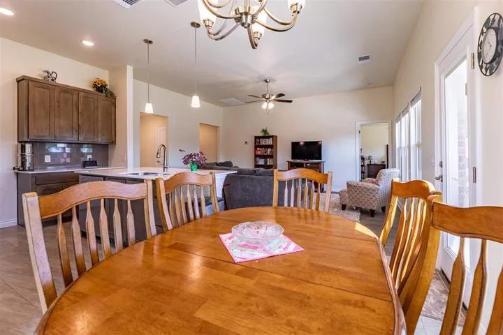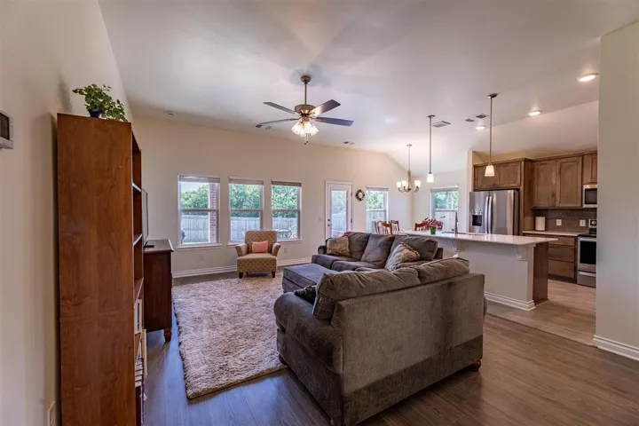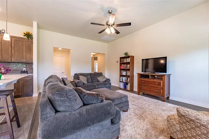 Price Adjustment~ Custom Home! Better Than New! Upgraded 3-Bedroom Home on Premium Corner Lot Welcome to this beautifully upgraded 3-bedroom, 2-bath home located in a vibrant new neighborhood with a playground and splash pad. Unlike the standard new builds, this resale gem is move-in ready and packed with custom features you won’t find elsewhere! Sitting on a spacious corner lot with established trees, this home offers extra privacy and curb appeal. Inside, you’ll find an open layout with tile and laminate flooring throughout the main living areas, and plush carpet in the bedrooms for added comfort. The kitchen and bathrooms feature upgraded wall tile and soft-close drawer guides—details that truly elevate the space. The extended garage provides room for storage or a workspace and includes a side exit door for convenience. Whole-house gutters are already installed, and the covered patio includes a gas line—perfect for your future outdoor kitchen or grill. This home combines the perks of a new neighborhood with the added value of thoughtful upgrades already in place. Come see the difference!