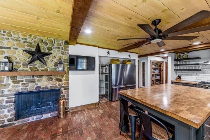 NEW PRICE!! THIS CHARMING Home on Spacious Lot Close to Boomer Lake, OSU and High School! This wonderful home has a Stunning Kitchen Remodel featuring a Warm and Cozy Inspired Living Space!. Nestled on a generously sized lot with mature trees and a convenient circle drive, this beautifully updated 4-bedroom, 2.5-bathroom residence offers the perfect blend of comfort, and timeless style. Step inside to discover a completely remodeled kitchen that’s functional and a chef’s paradise — featuring an impressive 8-burner stainless steel Forno double oven range, double side by side refrigerators, oversized island, and a sleek under-counter ice maker. The kitchen flows seamlessly into the cozy den, where brick paver flooring, rich wood beams, and a river rock masonry fireplace create an inviting, lodge-like atmosphere. The large living room is flooded with natural light from an abundance of windows, and there’s a spacious office just off the main living area — ideal for working from home or as a quiet retreat. You can choose either of the two bedrooms for the master suite which is located downstairs, ideal for guests. The downstairs bath has been fully remodeled with a glass walk-in shower, freestanding soaker tub, new tile flooring, and modern vanities. The bedroom on the East side is plumbed outside for an on suite master bathroom that owners did not have time to complete. Two additional bedrooms and a full bath are located upstairs, along with an oversized closet for plenty of storage. Enjoy year-round living in the 384 sq ft sunroom filled with natural light and surrounded by windows — perfect for a morning coffee or evening unwind. The bonus here is there is currently not a home behind you, just a great view. Additional updates include upgraded electrical, brand new hot water tank, new skylight, new carpet and stylish new finishes throughout. Seller is also offering Home Warranty of $475. This one-of-a-kind home combines character, convenience, and craftsmanship — a must-see! CALL TO VIEW TODAY!!! CK OUT THE VIRTUAL TOUR!