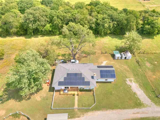 This beautifully updated 4 bed/2 bath brick Modern Farmhouse sits on nearly 13 acres just outside of Cushing with no dirt roads and a prime location near the newly built schools! The home has been thoughtfully remodeled and expanded, including a stunning kitchen and second bath taken down to the studs, a remodeled master bath and closet with added utility room, and fresh interior paint throughout! Flooring is all new with luxury vinyl plank in the main living areas and cozy carpet in the bedrooms, complemented by a new front door, new front porch deck, and updated windows—most replaced in 2015 and the final three in 2025. Efficiency upgrades include a 2017 impact-resistant roof for insurance savings, solar panels installed in 2019, and brand-new attic insulation in 2024, resulting in a $0 electric bill this summer. The home also offers a high-quality water softener, point-of-use water heater, foundation supports installed by Vesta under the entire home in 2019, and central HVAC. Outside, the acreage is cross-fenced with approximately 2.5 acres goat-fenced and the remainder horse-fenced with barbed wire perimeter. An older barn provides four kidding stalls, the back pasture is filled with native grasses and wildflowers, and a small pond offers both charm and utility. The 2.5-car garage adds convenience and extra storage! Combining modern farmhouse style, energy efficiency, and functionality, this property is move-in ready and perfectly set up for country living with quick access to town and schools! This one is truly a must-see! Call to set up a showing appointment today!!