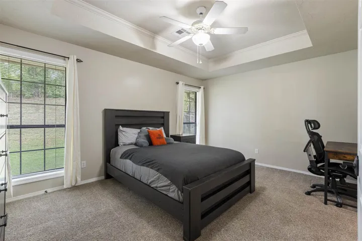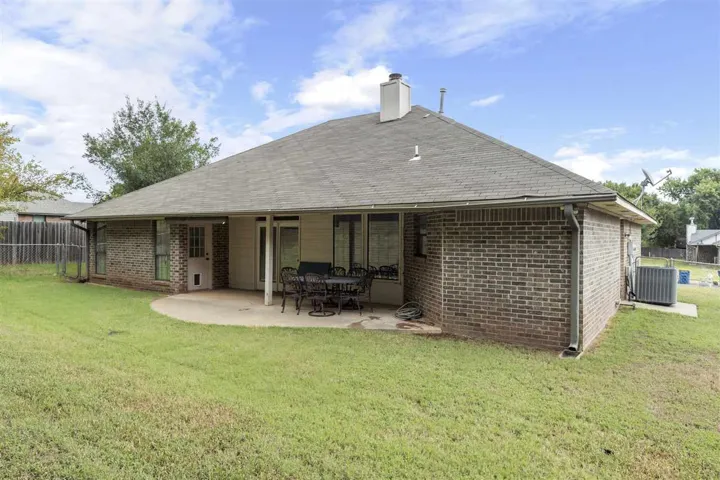 Move-in ready in Westbrook Estates! This charming brick home has been beautifully updated with fresh interior paint, brand new carpet throughout, and LVP floors. The spacious living and dining areas share a cozy double-sided fireplace and are filled with natural light. The kitchen features white cabinetry, stone countertops, and stainless appliances. The owner’s suite is a true retreat with a brand-new custom tiled walk in shower, freshly painted vanity, new carpet in the closets, dual sinks, and soaking tub. Two additional bedrooms share a spacious hall bath. Outside, enjoy both covered and open patio spaces overlooking the fenced backyard with a French drain system for peace of mind. Major mechanicals replaced in 2023 include a new Amana cased coil, gas furnace, and condensing unit. All in a fantastic location near Sangre Elementary, middle school, and local conveniences! It’s time to make this Westbrook house your new home!