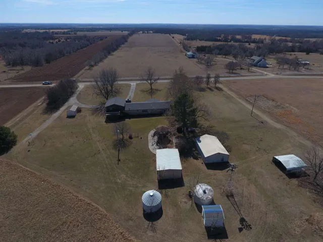 If you are looking for some acreage ½ mile off of paved road, welcome home. This property offers 52+ acres ½ Mile east of HWY 18 on 19th street. The property produces fantastic native hay, as well as some timber and a pond. The home offers 2310 square feet of living space in the main home, which consists of 3 bedrooms and 2 full bathrooms. Off the kitchen there is a den, with old fireplace (has not been used). There is additional space upstairs for a 4th bedroom or bonus room as well as an area for a full bath. The area is unfinished, but the space is there for a great space. The kitchen is updated with a gas cooktop and a built-in oven and microwave as well as a farm sink with views of the back yard. The original 3 bedrooms offer original wood floors and the master bathroom that was added on is huge with walk in shower, dual vanities, large closet and access to back yard. There is a large shelter under the carport as well. There is a building that was used as a guest home, with a full bath and kitchenette. The property also offers a barn as well as 3 other storage buildings. The roof is 5 years old and there are two wells as well as a propane tank (that is owned) that go with the property.