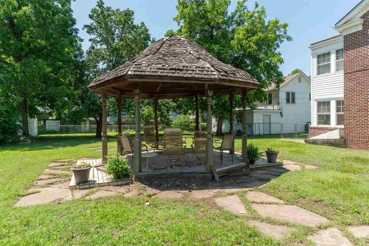 Once-in-a-Lifetime Opportunity in Cushing! For the first time in over 50 years, this remarkable Colonial-style home is available on the market! This 4 Bed/2.5 Bath Brick Home with an additional Guest House/Apartment has been lovingly maintained by only two families in its 92-year history, this generational treasure is truly the jewel of the block! Step inside and be welcomed by the timeless character of original hardwood floors, classic tile bathrooms, and a warm gas fireplace, seamlessly blended with thoughtful updates! The spacious floor plan offers a formal dining room perfect for celebrations, a sunroom that doubles as a dedicated home office space—perfect for those working remotely from home, and a large family room! The updated kitchen features gorgeous stainless steel appliances, granite countertops, and abundant cabinet space for effortless meal prep and storage! Upstairs, you’ll find spacious bedrooms, a Jack & Jill bath, convenient laundry near the bedrooms, and an unbelievable staircase equipped with an electric chair lift, making it easy for anyone to access the upstairs rooms and bedrooms! Fresh interior paint and a new electric water heater provide peace of mind, while the numerous windows create a bright, inviting atmosphere! The lower level includes an attached basement with interior/exterior access, adding flexible space for storage or hobbies! Outside, the extra-large lot is perfect for family gatherings, complete with a gazebo and seating area, outdoor storage shed, and plenty of parking with an additional 2-car carport and large driveway! A detached 2-car garage with workshop also boasts a charming upstairs apartment, which is not included in the recorded sq footage, is complete with kitchen updated in 2014—ideal for guests, a mother-in-law suite, rental potential or an Airbnb, providing additional imcome! Homes like this rarely come available—don’t miss your chance to own a piece of Cushing history and create memories for generations to come!