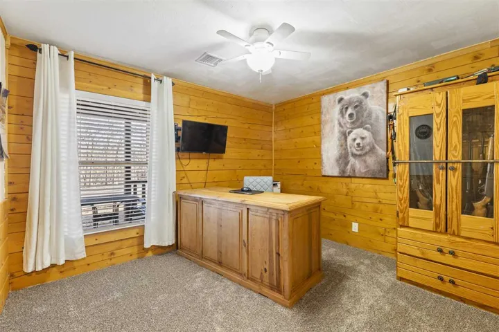 Captivating Log Cabin Retreat on 10 Acres. This stunning log cabin home, set on 10 acres, features 4 bedrooms and 2.5 baths, providing a serene environment for comfort and relaxation. The impressive living room makes a statement with its soaring two-story ceiling, a cozy loft sitting area, and an entire wall of windows, with a fireplace that serves as the room’s centerpiece. The thoughtful floorplan design offers a well-considered division of spaces, balancing privacy and primary living areas. The kitchen complements the main living spaces with new quartz countertops and stainless-steel appliances. Downstairs, you’ll find a large primary suite that not only offers convenience but also includes a private deck with breathtaking views. Additionally, two bedrooms on the main level ensure ample space for guests or family. Upstairs, discover two spacious bedrooms that provide a sense of seclusion, perfect for family members or guests. These rooms are connected by a charming sitting area that overlooks the living room. One of the bedrooms can double as a media room (media equipment included, no warranties), creating an ideal space for entertainment and leisure. The home is equipped with both interior and exterior surround sound systems for enjoyment throughout the seasons. Enjoy the outdoor oasis, with three separate patio areas and a firepit. This property offers perfect opportunities for relaxation while taking in the picturesque views. Additional Features- For hunting enthusiasts, the property boasts a strategically located custom deer blind, known for its consistent success. The outbuildings at the front of the property, each with electricity, present endless possibilities for creative use, such as a workshop, studio, or additional storage. The property also includes a hidden pond, providing a peaceful retreat. Surrounded by tall trees and breathtaking scenery, this property promises a lifestyle of tranquility and beauty, making it a perfect haven for those who love to entertain and enjoy the great outdoors. This enchanting property has previously operated as a cherished Christmas Tree Farm, welcoming seasonal visitors. You can build upon this concept or explore endless new ventures. Conveniently located just minutes from shopping, dining, and the vibrant atmosphere of Oklahoma State University, this one-of-a-kind log home is beautiful and move in ready!