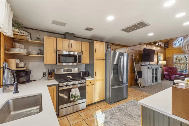 Captivating Log Cabin Retreat on 10 Acres. This stunning log cabin home, set on 10 acres, features 4 bedrooms and 2.5 baths, providing a serene environment for comfort and relaxation. The impressive living room makes a statement with its soaring two-story ceiling, a cozy loft sitting area, and an entire wall of windows, with a fireplace that serves as the room’s centerpiece. The thoughtful floorplan design offers a well-considered division of spaces, balancing privacy and primary living areas. The kitchen complements the main living spaces with new quartz countertops and stainless-steel appliances. Downstairs, you’ll find a large primary suite that not only offers convenience but also includes a private deck with breathtaking views. Additionally, two bedrooms on the main level ensure ample space for guests or family. Upstairs, discover two spacious bedrooms that provide a sense of seclusion, perfect for family members or guests. These rooms are connected by a charming sitting area that overlooks the living room. One of the bedrooms can double as a media room (media equipment included, no warranties), creating an ideal space for entertainment and leisure. The home is equipped with both interior and exterior surround sound systems for enjoyment throughout the seasons. Enjoy the outdoor oasis, with three separate patio areas and a firepit. This property offers perfect opportunities for relaxation while taking in the picturesque views. Additional Features- For hunting enthusiasts, the property boasts a strategically located custom deer blind, known for its consistent success. The outbuildings at the front of the property, each with electricity, present endless possibilities for creative use, such as a workshop, studio, or additional storage. The property also includes a hidden pond, providing a peaceful retreat. Surrounded by tall trees and breathtaking scenery, this property promises a lifestyle of tranquility and beauty, making it a perfect haven for those who love to entertain and enjoy the great outdoors. This enchanting property has previously operated as a cherished Christmas Tree Farm, welcoming seasonal visitors. You can build upon this concept or explore endless new ventures. Conveniently located just minutes from shopping, dining, and the vibrant atmosphere of Oklahoma State University, this one-of-a-kind log home is beautiful and move in ready!
