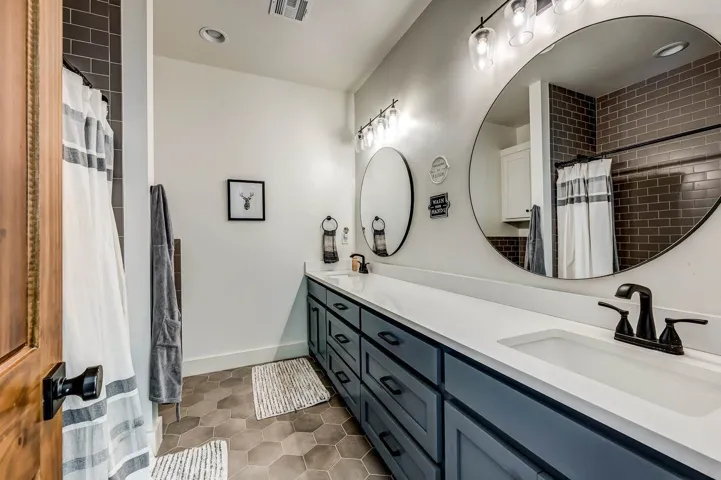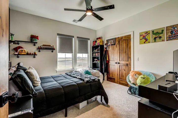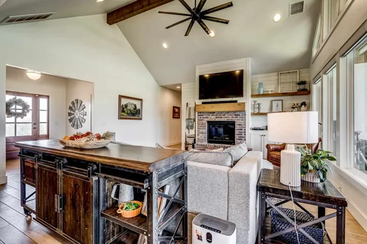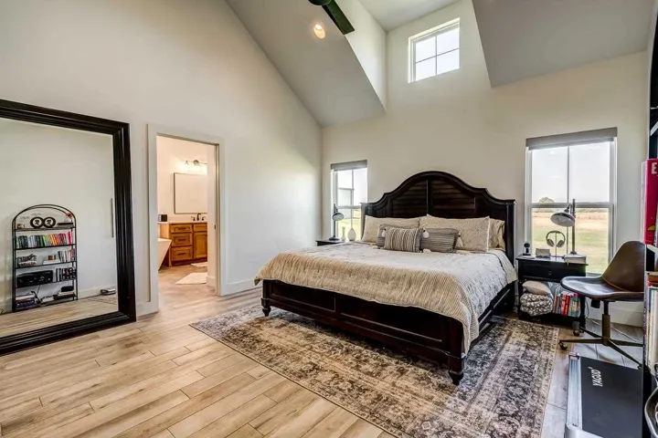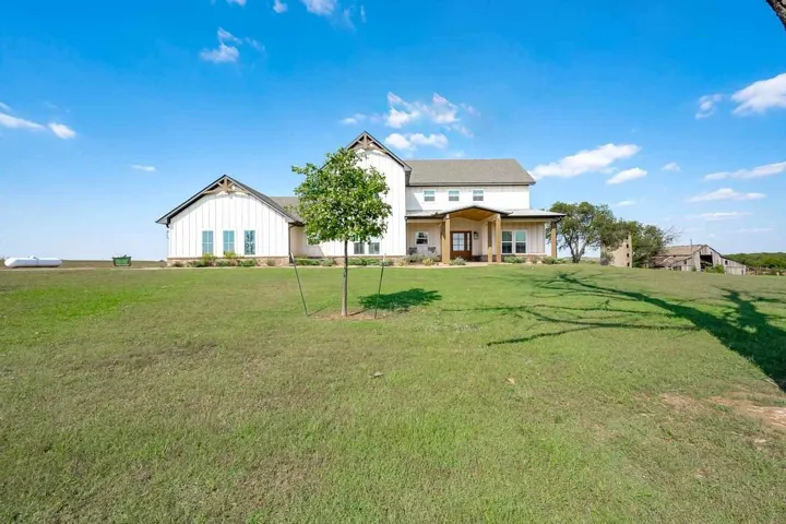 Welcome to this stunning custom-built modern farmhouse perfectly set behind a gated entry on 10 acres (MOL) of peaceful countryside. Every detail of this home was thoughtfully designed—from the closed-cell spray foam insulation to the wood-look tile floors and reclaimed wood stair treads. The open-concept floor plan features a soaring cathedral ceiling and expansive windows framing beautiful country views. The designer kitchen is a showpiece, offering high-end Thor appliances, quartz countertops, custom cabinetry, a farmhouse sink, and a large walk-in pantry with its own sink, double ovens, and pull-out mixer stand. The primary suite is located on the main floor, complete with a freestanding soaking tub and premium fixtures, along with a second bedroom ensuite for added flexibility and comfort. Upstairs offers two additional bedrooms, a full bath, and a bonus room. The home also includes thoughtful touches throughout—Generac whole-home generator, fireplace with blower, built-in dog kennel in the laundry room, and a dog washing station in the garage. A water softener and reverse osmosis system add to the convenience and comfort. Outside, enjoy the 30×40 detached metal barn with spray foam insulation, sink, electricity, and an oversized garage door. This property delivers the perfect blend of modern luxury, country charm, and functionality—a rare find with so many amenities already in place