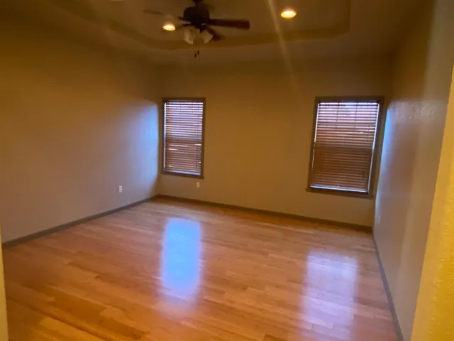 Rent – $3200/month • Security Deposit – $3200 • SERVICE ANIMALS ONLY! NO SMOKING! • Available January 1st, 2026 (negotiable)! • Beautiful home on a cul-de-sac in sought after Oakdale Park. This 5 bedroom (3 down & 2 up), 3 full baths with a super functional floor plan has much to offer. All flooring downstairs is bamboo wood or tile. Upstairs there are two bedrooms, a full bath, and TWO bonus areas. Downstairs you will find the living room with gas log fireplace, kitchen with eating area, formal dining room, laundry/mudroom, 2 secondary bedrooms and the private owners suite complete with two sink vanity, soaking tub, separate tiled walk in shower with glass doors, large walk in closet which doubles as a SAFE room. The kitchen has richly stained cabinetry, stainless appliances, separate eating area, a raised bar, granite counters, walk in pantry, and under cabinet lighting. Laundry/mud room is big and has built in wall length boot bench and storage cubbies.