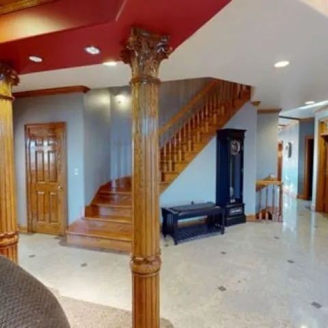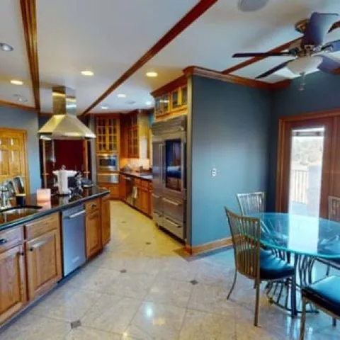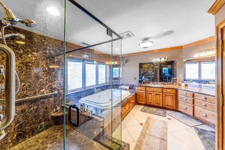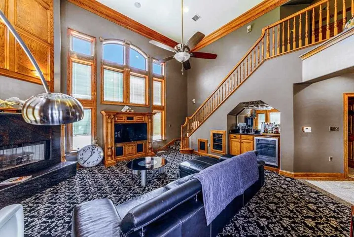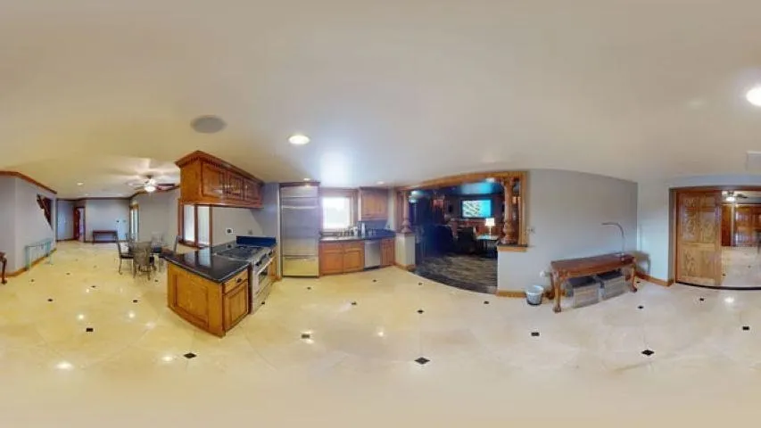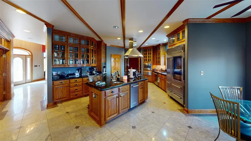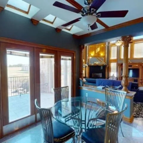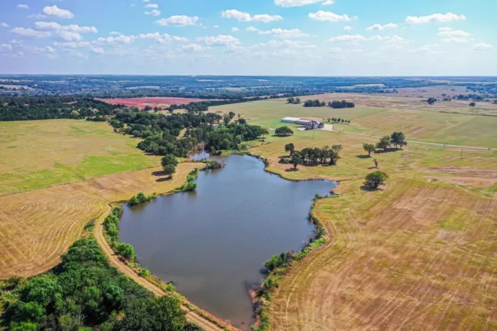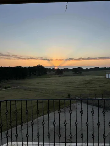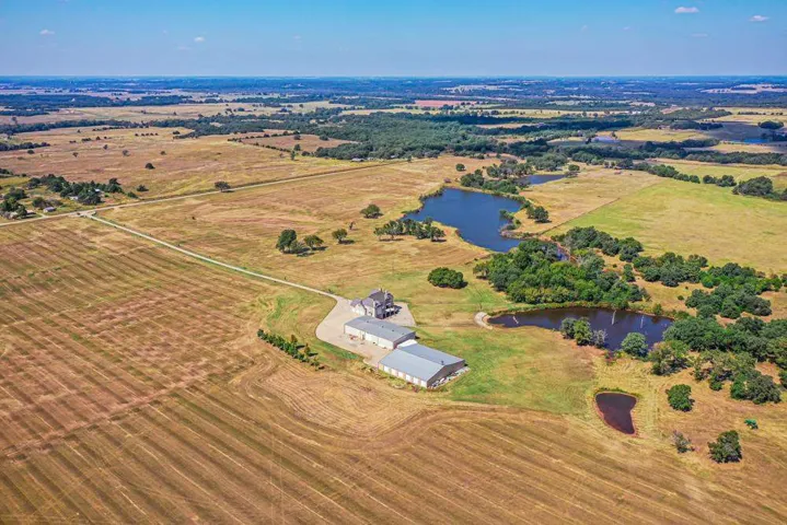 This home was literally built with Oklahoma sunrises and sunsets in mind! An extraordinary custom-built estate on 123.25± acres offering elegance, comfort, and functionality at every turn. Designed for entertaining and luxurious country living, this home showcases 6 bedrooms, 4.5 bathrooms, and over-the-top craftsmanship throughout. Enter through the grand foyer into a home filled with light, soaring ceilings, and four fireplaces. The main level features multiple living and dining areas, a chef’s dream kitchen with gas and electric cooktops, double ovens, microwave, ice maker, bun warmer, commercial hood, and commercial refrigerator, plus both a butler’s pantry and a kitchen pantry. The family room includes a wine bar and a two-story ceiling, perfect for entertaining. The primary suite is a private retreat with double walk-in closets, a fireplace, sitting area overlooking the property, jacuzzi tub, separate shower, and double sinks. Other interior highlights include a theater room (equipment remains), sunroom overlooking the pond and storybook tree, safe room or second office, elevator, lift chair, two full kitchens and three living spaces, built-ins throughout, and wood, carpet, marble, and imported Italian travertine flooring. The home’s design offers multiple balconies, a walk-out basement, covered patios, and outdoor lighting that complement the stunning rural setting. The long concrete driveway provides plenty of parking and leads to a three-car garage with built-ins. The property includes a fenced backyard, perimeter fencing, a pond with an aerator powered by a windmill, and a 120×60 insulated, heated, and cooled barn with a full apartment. A 100×50 barn with two 100×30 lean-tos, multiple overhead doors, and electric provides additional utility. There’s also an extra outbuilding for storage or workspace. A new metal roof (2023) completes this impressive estate. The acreage features two large ponds and is a functional pasture/hay meadow with sporadic hardwood trees. This one-of-a-kind property combines timeless craftsmanship, thoughtful design, and breathtaking acreage to create the ultimate private estate. Every detail has been considered—from the imported finishes to the expansive barns—making this property perfect for those seeking luxury, space, and serenity. Additional land may be available.