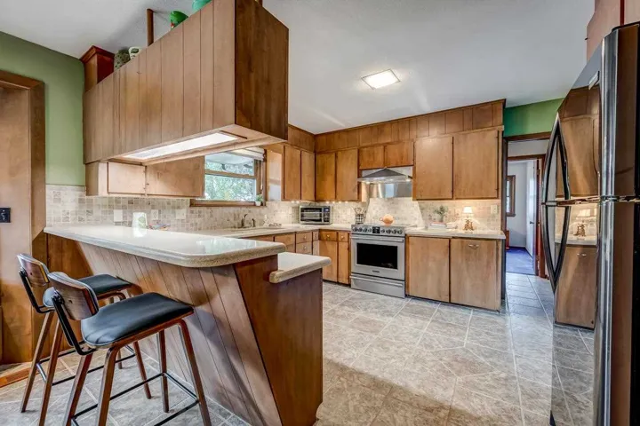 Discover this hidden gem on 3.5 Acres — a Mid-Century Modern style home that perfectly balances privacy, space, and character. Tucked away in town yet surrounded by trees and wildlife, you’ll feel like you’re living in the country while enjoying all the conveniences of city life. Inside, the main level features the primary bedroom along with a spacious living area filled with natural light from large picture windows and sliding doors that open to balconies overlooking the serene backyard. The walk-out basement adds even more functionality, offering two additional bedrooms, a second living area, laundry, abundant storage. The kitchen boasts newer high-end stainless appliances, plenty of cabinetry, and a charming breakfast bar. Step outside to enjoy deer and turkeys roaming your property, or relax on one of the multiple balconies with a view of your private acreage. The garage features a custom epoxy-coated floor and ample room for projects or parking. The 40×50 shop with lean-to is a dream space — complete with its own office, heating, electrical, and water access. Don’t let the secluded setting fool you — this home is truly beautiful and one-of-a-kind. You can’t see it from the road, so be sure to schedule your in person showing or explore the 3D tour to appreciate all it has to offer!