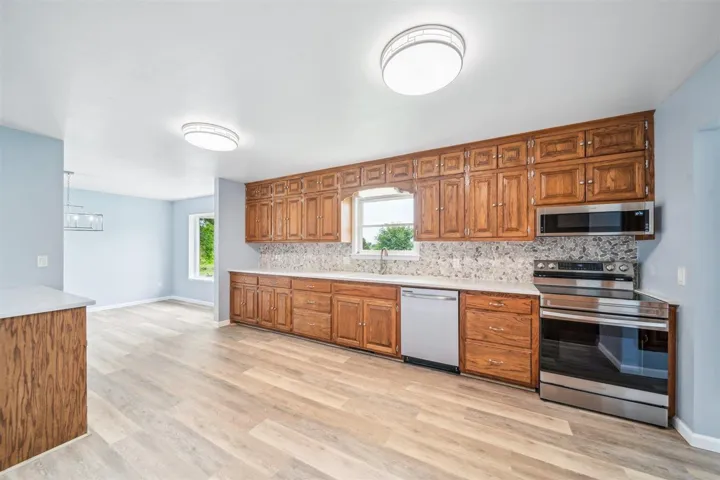 COMPLETELY RENOVATED, MOVE IN READY. The seller has offer a lease option to buy, please reach out for details. Looking for a charming country home that has it all? Look no further! This fully renovated and updated home combines modern amenities with timeless country warmth. The large kitchen is a standout feature, equipped with new stainless appliances and quartz countertops that will make cooking a pleasure. Convenience is key with a well-placed laundry/mudroom area adjacent to the kitchen. All 3 bathrooms are elegantly designed with quartz countertops! Downstairs, you’ll discover a large living area, ready to be a game room or movie theater, two sizable rooms with closets that can be used as bedrooms, and a large full bathroom. Enjoy serene evenings on the spacious east-facing front porch. A matching brick shop close to the house provides easy access to work or hobby space. This country home offers the perfect blend of tranquility and convenience. Don’t miss out on this exceptional opportunity! .75 acres +/-