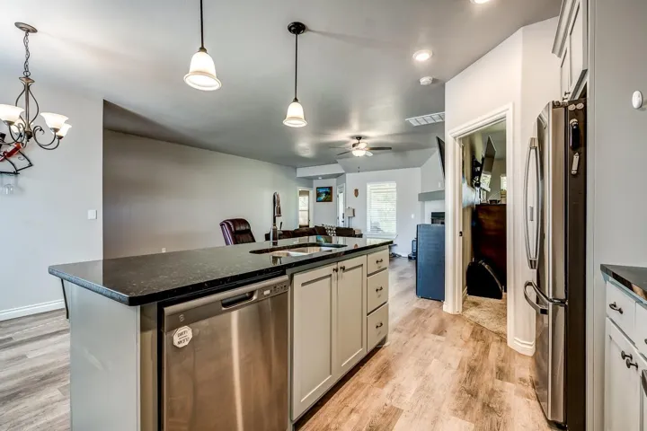 Built in 2022, this 4-bed, 2-bath home offers a bright open floor plan with a split-bedroom layout and modern finishes. Enjoy a stylish kitchen with stainless appliances and an island for entertaining. Relax on the covered patio or work from home with Bluepeak 5 Gb internet. Smart features include the thermostat, front door, garage door function, and full home security system—modern comfort and convenience all in one!