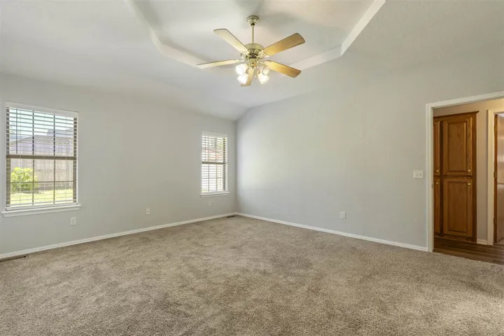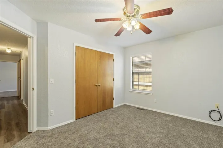 Welcome to this move-in ready single-story home featuring 4 beds, 2 baths, and a 3-car garage! Located on a peaceful cul-de-sac, this single-owner home includes new paint, flooring and window treatments throughout. The open concept living and dining area creates a seamless space, ideal for both everyday living and entertaining. The primary bedroom has a walk in closet and on-suite bathroom, including both a shower and a jacuzzi tub. The 3-car garage gives plenty of space for extra storage, hobbies or multiple vehicles. It has a built-in workbench with plenty of shelving and a storage closet. There is also an 8’x10’ storage shed in the backyard. The dishwasher (2024), double oven stove (2019), washer, dryer, microwave and fridge can stay with the house. A new roof was installed in 2025 and this home is ready for its next owner. Schedule a showing today!