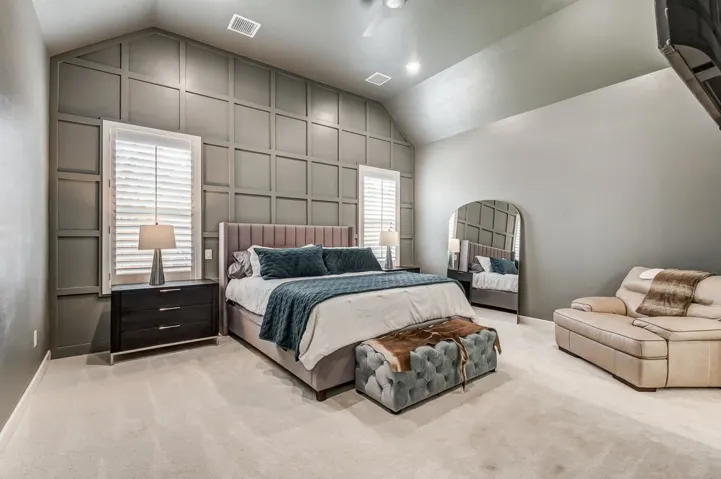 LUXURIOUS NEW LISTING IN EXCLUSIVE FIDDLER’S HILL ADDITION 4 BED | 3.5 BATH | 3 CAR OVERSIZED GARAGE | BUILT 2022 | LIKE NEW Welcome to this extraordinary new offering in the private, gated Fiddler’s Hill Addition. Built in 2022 and presenting in like-new condition, this exceptional residence features a thoughtful layout with three bedrooms, 2.5 baths and a versatile bonus/flex room on the main floor, plus an additional bedroom and full bath upstairs that could alternatively serve as a second bonus room. The heart of this remarkable home showcases a grand open-concept design that seamlessly integrates the living, dining, and kitchen areas, perfect for both everyday living and sophisticated entertaining. The gourmet kitchen boasts custom white oak cabinets built on-site, 6 cm granite countertops, a commercial 48″ range, and an impressive 72″ built-in refrigerator. A large walk-in pantry provides abundant storage while a spacious mud room/office with built-in desk offers versatile functionality. Premium construction features include spray foam insulation, a highly efficient zone-controlled HVAC system (98% efficiency with 3 separate zones), 12′ ceilings throughout, and solid 8′ core doors. The oversized three-car garage is heated and cooled, 12′ ceilings, insulated 9′ doors, coated floors, and dual EV charging stations, can accommodate three super duty trucks with ease. Outdoor living is elevated with an 18′ full sliding door opening to the back patio, complete with a built-in grill, outdoor refrigerator, and low-maintenance turf backyard surrounded by attractive cedar fencing with trim. The property includes an 8-person hot tub and Rainbow playset. Additional luxury touches include a custom steam shower in the primary bath, a stunning walk-in glass wine closet in the main living area featuring elegant glass door, front wall and shelves (fully insulated and ready for climate control), full surround sound throughout the home, garage, and patio on zone control, and an impressive 5’x10′ custom pivot front door. The home’s exterior features concrete stucco with Texas rock, complemented by a stained driveway with diamond cut detailing. This exceptional residence comes complete with all TVs included and is fully wired for generator backup. This is truly a must-see property to fully appreciate the meticulous attention to detail and premium features throughout. Please give a 48 hour notice for showings.