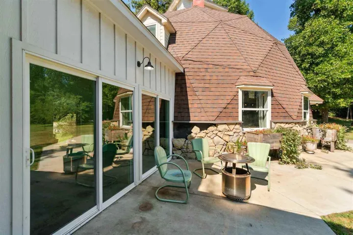 A One-of-a-Kind Retreat! This distinctive dome-style home offers nearly 3,500 square feet of thoughtfully designed living space, artfully balancing comfort with creativity. With four bedrooms, two and a half baths, two welcoming living areas, and a versatile bonus room, there’s plenty of room for both everyday living and entertaining. Nestled on 7.5 acres, the property provides a serene sense of privacy, enhanced by a tree-lined drive leading to the residence. At the heart of the home is a custom kitchen that radiates cheerfulness, warmth, and function—naturally becoming the gathering place for family and friends between the large bonus room and main living space. The rest of the downstairs is equally inviting, offering wonderful views of the property from every angle. Upstairs, you’ll find a second living area along with four bedrooms, each thoughtfully designed with unique architectural details (don’t miss the windows!). The primary suite features its own sitting area—perfect for winding down with a good book and glass of wine—plus a walk-in closet and private bath. Three additional bedrooms and a convenient half bath complete the upper level, offering comfort and flexibility for family or guests. Outdoor living is just as appealing, with a stock tank pool and wide-open space for relaxing evenings or nights under the stars. The hyphen connecting the dome and the 936-square-foot garage provides sheltered access in any weather and doubles as a bright space where indoor plants can thrive. The garage itself offers three garage bays with a workshop area and generous storage and has a fully framed second level ready to transform into a guest apartment, creative studio, or private retreat. Full of charm and possibility, this rare home invites you to settle in, stretch out, and create the lifestyle you’ve been dreaming of. The home is occupied and requires notice before showings. Please keep in mind that there are two friendly dogs on the property.