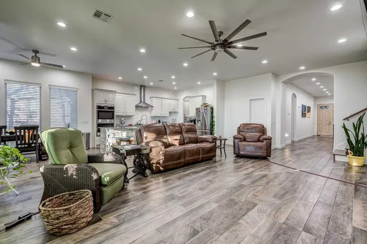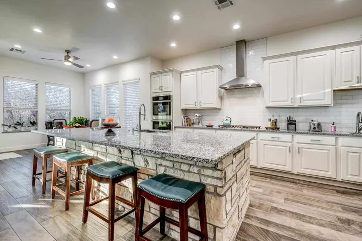 Price reduced to sell! Luxury living with one of the best sunset views in Stillwater. Welcoming Texas Hill Country custom build inspired by Southern Living Architecture that is perfect for entertainment. Light and bright, and nestled in the highly sought-after Woodland Trails community. Built in 2022 with functionality and features galore: 5 beds (3 down, two up), office, 3.5 bath plus pool bath. Ten-foot ceilings downstairs, arched doorways and west wall of windows overlooking outdoor living space and hillside views. Timeless high quality wood look tile in main living areas. Extremely energy efficient with spray foam insulation and green board exterior. Designer chef’s kitchen with professional grade GE smart appliances. Custom cabinets, tons of countertop space and dine-in with a view for guests and entertainment. Open design that seamlessly transitions to gorgeous, private outdoor living. Spacious master suite and spa-like master bath, HUGE master walk-in closet. Three bedrooms down, upstairs bedroom with ensuite bath and bonus room. Outdoor covered living, wood fireplace, saltwater pool, basement bath and storm shelter on half acre lot. Tankless water heater, Culligan water softener and triple PLUS garage for workspace and storage. Huge walkout attic space = spray foam insulated. Move quickly – available for occupancy Jan 1st! Stillwater Schools, Sangre Ridge Elementary