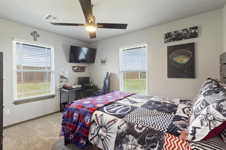 Fantastic listing in Trio Ranch!!!! This beautiful 4 bedrooms, 2 bathrooms, 3 car garage sits on 1/2 acre with great curb appeal. Since ownership, sellers had a new roof installed, added privacy fence in backyard and added a sprinkler system for watering convenience. You will not be disappointed with 2,152 sf of living space, split bedroom floorplan and wonderful covered patio/backyard area. As you walk up the path to the front door you will appreciate the flower beds and spacious porch area, ready for you to decorate for the holidays. As you enter the home, you will immediately notice the 9′ ceilings and open concept from living room to the kitchen on to the dining room. The open concept will definitely allow plenty of space to host family and friends. There is abundant storage throughout the kitchen. Granite counters and knotty alder cabinets in kitchen and bathrooms. Granite window sills in the living room and dining room. Kitchen has stone sink and stainless steel appliances. The primary bedroom is impressive with 10′ trey ceiling, crown molding and has an en suite with two sinks, additional workspace between sinks, extra-large walk-in shower, soaking tub and a fantastic large walk-in closet. Off the living room can be your 4th bedroom since you have a closet or can be utilized as office space. Two spare bedrooms on opposite side of house with main bathroom and storage located off hallway The main bathroom also has double sinks, which is very convenient for getting the family ready. The over-sized laundry room allows you space to complete daily tasks. The covered patio and wood privacy fence gives you the opportunity to enjoy your backyard. Don’t hesitate to schedule your private showing!!!!