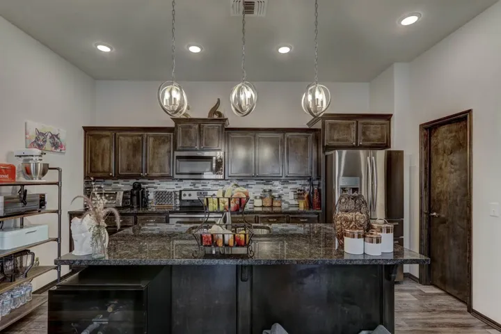Available August 1st! This impressive three bedroom home plus study, completed in July 2018, has a plethora of upgrades and is located in Southwest Stillwater’s trendy neighborhood of Tradan Heights. The spacious Study is located on its own wing of the home for privacy or make this flex space a play room or even a 4th bedroom if you add your own armoire closet. This popular floorplan (so popular in fact that it is the same floorplan as the model home) is built by Ideal Homes and has a true open feeling, allowing the living room, kitchen, and dining room to all flow as one large entertaining space. The oversized living room has a cozy corner fireplace, modern colors, and 10 foot ceilings. Luxury vinyl wood floors cover all the main areas, including the kitchen, living room, dining room and study. The kitchen has plenty of beautiful dark stained maple cabinets, a walk-in pantry for storage, stunning black and gray 3cm GRANITE countertops, mosaic glass tile backsplash, and a central island. A refrigerator, dishwasher, microwave, oven are included. And yes, you can fit your large dining room table in this vast dining room! The master can easily accommodate a king sized bed and you’ll have to see the closet in person- SO BIG! The master bathroom offers a large walk in tiled shower, soaking tub, and L-O-N-G vanity with double sinks. The two secondary bedrooms can accommodate a queen size bed comfortably and are close to the laundry room for easy access. The handy mud room bench and upper shelves are off the garage for extra storage space. Do not miss the 6-8 person STORM SHELTER in the garage. And do not forget the laundry room that has storage cabinets. Enjoy privacy in the backyard with the 6 foot fence and covered back patio. This home is located just minutes from the new and highly ranked Westwood Elementary School and OSU campus. New community playground to entertain the kids, walking trails, plus multiple fishing ponds. Security deposit equal to one month of rent required upon signing lease. Pets considered on a case by case basis.