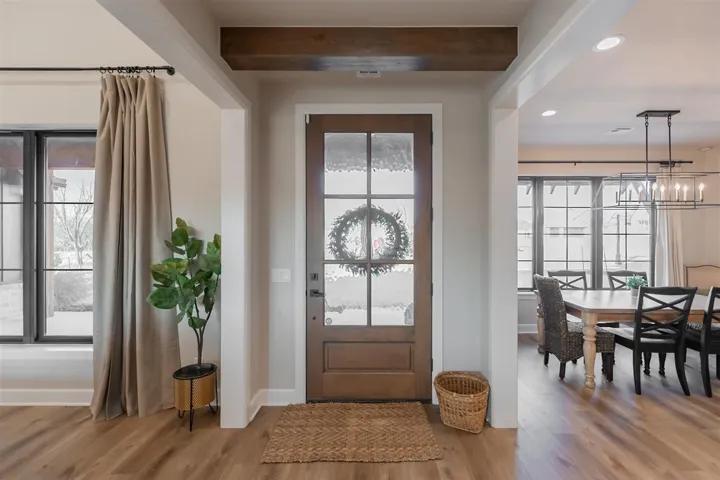 Modern luxury at its best! A must-see in Autumn Ridge. This custom-built, one-owner home is now on the market and ready for a new owner. Built in 2023, this home is like new and thoughtfully designed with high-end finishes and exceptional attention to detail throughout. Offering over 3,400 square feet of living space and a three-car garage, this property delivers both style and functionality. Situated on a corner lot backing to the neighborhood pond, the setting provides privacy, beautiful views, and a peaceful backdrop. The heart of the home is the stunning open-concept kitchen featuring a large center island, custom cabinetry, designer lighting, and seamless flow into the dining and living areas – perfect for entertaining or everyday living. This home offers five bedrooms, 4 bathrooms, including a highly desirable layout with two bedrooms on the main level and three bedrooms upstairs. Upstairs also features a bonus area ideal for a second living space, game room, home office, or playroom. Enjoy outdoor living on the covered back patio overlooking the pond, perfect for grilling, entertaining, or enjoying a quiet morning cup of coffee while watching the sunrise. Additional highlights include an oversized laundry room with ample space for storage and organization, large windows that flood the home with natural light, and thoughtful design elements throughout. Located in the highly sought-after Autumn Ridge neighborhood, this exceptional home offers modern comfort, flexible living spaces, and a scenic setting – truly a place you’ll be proud to call home.