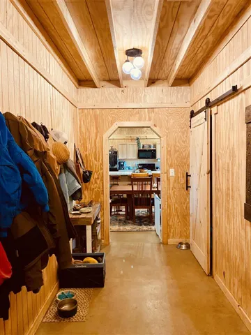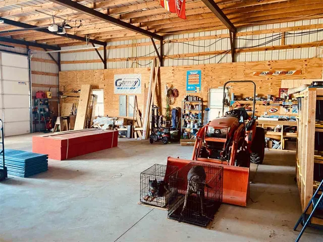 Barn dominium on 9.45 acres! You will love this 4 bedroom 2 1/2 bath home with a private setting off the highway. Tall spacious open living area. Large kitchen area with a huge island. Split floor plan with three bedrooms, office, full bath, and reading room on south end of the house and main bedroom and full bath on the North side. Huge walk in custom shower in main bathroom and walk-in closet with lots of room. Spacious laundry room and half bath in wide hallway leading to garage. Garage/ shop is attached and has room for 4 cars and a tractor! Custom built and well insulated. Make it Yours…