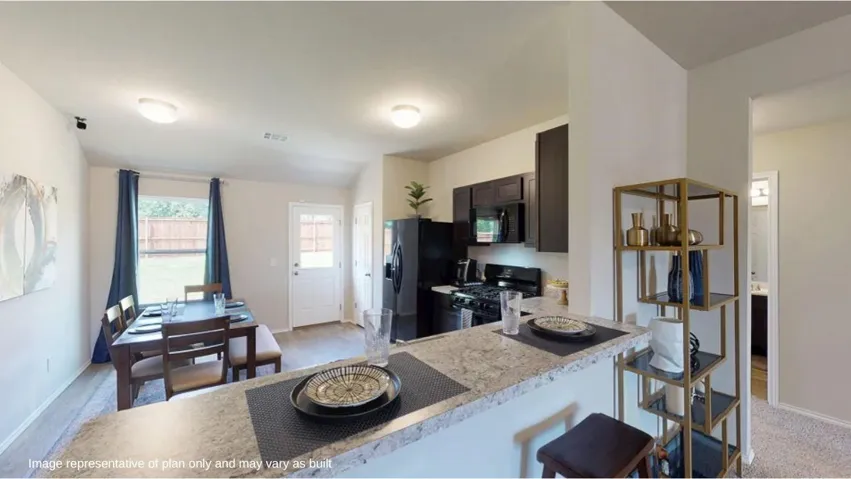 The CARNEGIE II floor plan is a single-story home ready for modern lifestyles. An open-concept floor plan shared between the kitchen and living room encourages simple everyday transitions and multitasking. Three secondary bedrooms are tucked away to the side of the home, opposite from the luxurious owner’s suite with a full bathroom and walk-in closet. Prices, dimensions and features may vary and are subject to change. Photos are for illustrative purposes only.