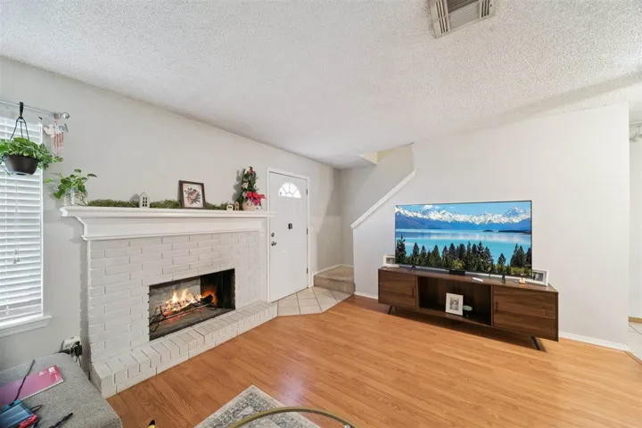 Charming, well-maintained condo near OSU and shopping. The living room features an inviting white brick fireplace and wood-look floors, with a kitchen that overlooks the space—perfect for everyday living and easy conversation. Tile in the entry, dining area, and bathrooms adds durability, while all bedrooms upstairs are carpeted for comfort and privacy. Refrigerator, washer, and dryer are included, along with an exterior storage closet. Enjoy the community pool and the convenience of lawn care and exterior maintenance being taken care of—easy, comfortable living in a great location.