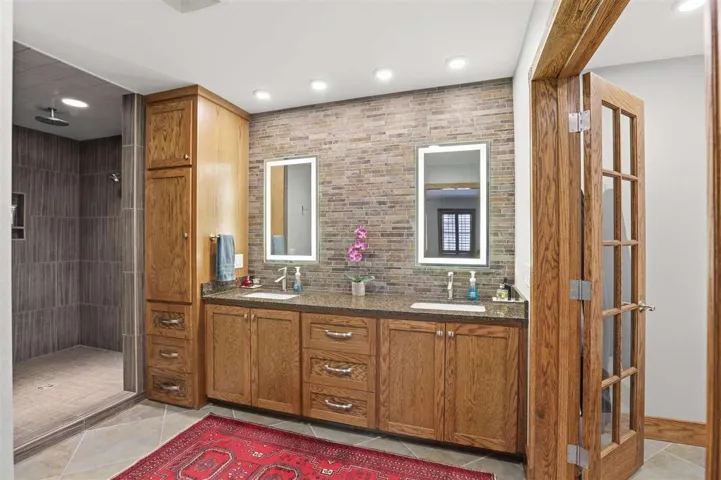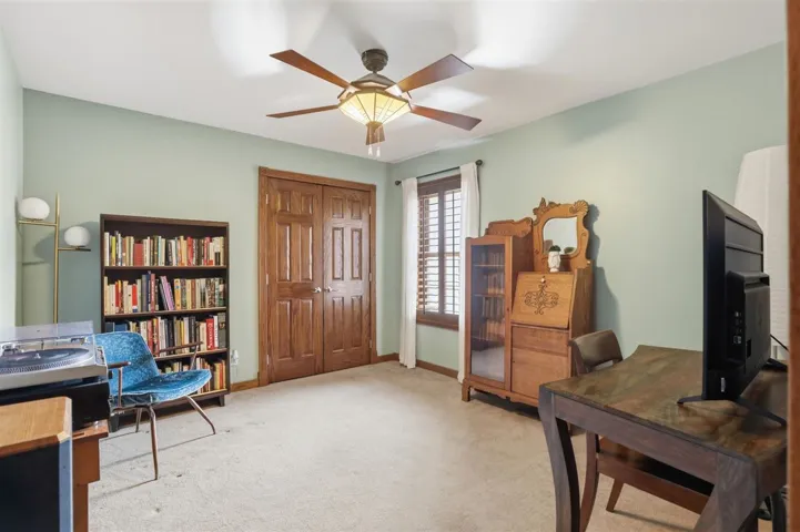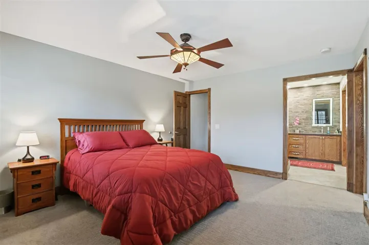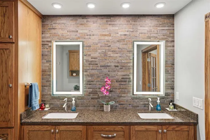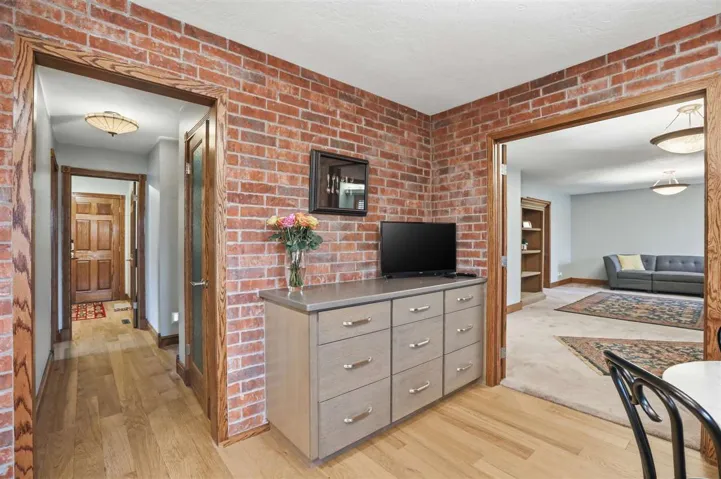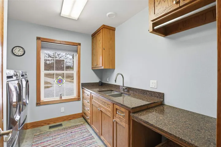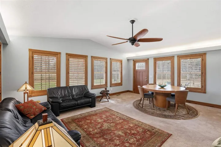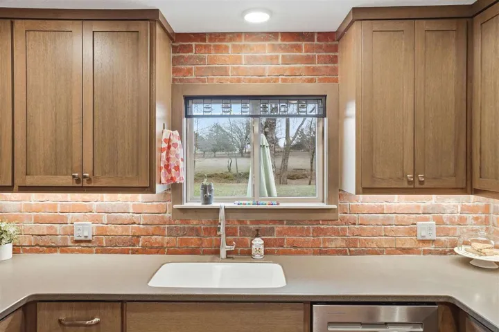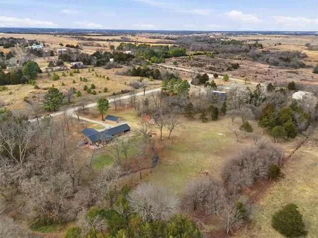 New Listing Price!!! Looking for a tranquil living environment that is located on a spacious and well-maintained 5 acres?? Then you do not want to pass up the opportunity to see this beautiful 3 bedroom, 2 bathrooms, 2 car garage and a 24 x 36 workshop. The house is meticulous with a carefully custom designed to enjoy the inside of every room in the house. The beautiful oak wood doors, trim, and baseboard are just one of the many outstanding items of this home. From the moment you step into the vestibule you are anxious to see what is on the other side of the door. Once moving through the main door of the house you can view the 2 living spaces and the gorgeous kitchen. The first living space has a built-in bookcase to display your special mementos, books or pictures. Off the main living room, you had another living room space that can be used as your family room, dining room or a combination of the two. The kitchen has nice hardwood floors, Corian counters, abundant storage, self-closing cabinets and drawers, stone sink with window above to view the acreage, a beverage refrigerator and a kitchen breakfast area that includes a side bar with additional storage. The brick walls add an additional country charm that is also carrying over into other rooms in the house. There is a hallway immediately off of the kitchen that leads you to a large pantry, 2 nice size spare bedrooms, main bathroom with large soaking tub and quartz counter, utility room that goes out to the garage, and hallway storage. As you continued down this particular hallway, it wraps around back to the front door. On the opposite side of the main living room is another hallway that takes you to the primary en suite that is spectacular. You can select from 1 of 2 rooms on where you will put your bed as both areas are very versatile on how you want to use the area. Carpet in 1 of the rooms while bamboo flooring in the 2nd room. In between the 2 rooms is very large his and her walk-in closets, separate laundry room and the primary bathroom. The primary bathroom has heated tile floors, over-sized walk-in shower, lighted mirrors and a separate area with a freestanding soaker tub. Plantation shutters throughout the house. There are 2 hot water heaters. Pella windows throughout the house installed in 2013. New aerobic septic installed in 2023. For efficiency, there is a geothermal heat/cooling system with 3 wells located in the south side of back yard. Epoxy flooring in the 2 car garage. New 40 year roof installed in 2023. Crawl space has been foamed for better insulation. The tranquility of the 5 acres has fence along the east side of the property and 2 frost free water sources (front & side yard). There are 3 patio areas for entertaining or to relax after a long day. Outside storm shelter is on the back patio. The brick walkway around the house is not only attractive, but functional. The shop has an over-head door, shelving, workbench area and electric, which would be great for storing yard supplies and/or hobbies. Schedule your showing today as this property will not be on market long!!!