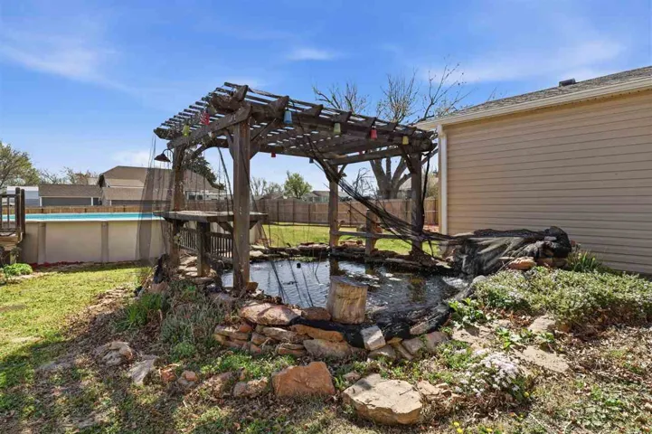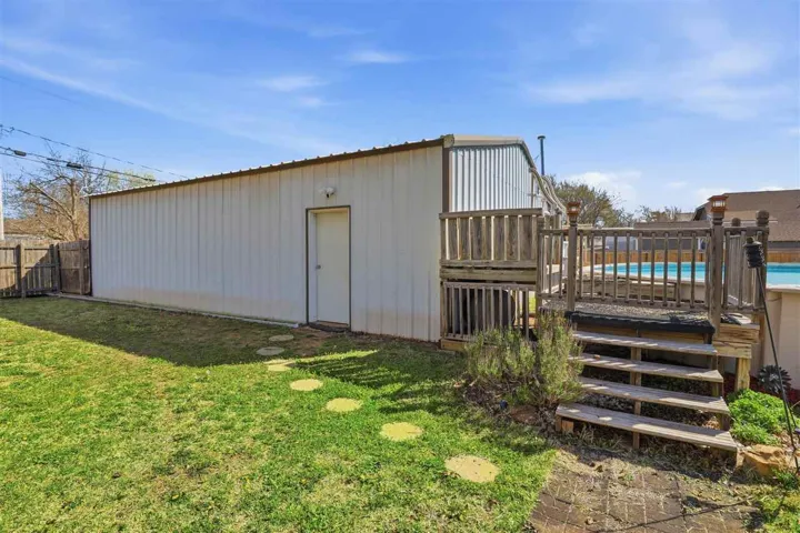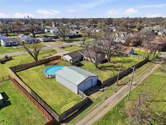 LOOKING for your own personal RETREAT? Check out this opportunity priced $20,000+ BELOW appraised value (on file)– Over 1/2 acre in town, fully privacy fenced yard w/swimming pool, koi pond, multiple outdoor living spaces perfect for hosting gatherings and a 1200 sq ft shop w/backyard alley access. COMPLETELY UPDATED 2,258 sq ft home offers it all: open concept living, spacious bedrooms, LARGE primary bedroom w/ensuite to include walk in closets and TWO full bathrooms. Additional bathroom near other three bedrooms of split floorplan. Over sized 560 sq ft attached garage and ample parking. Roof is 2 years old and two NEW complete HVAC units. Buyer agents welcome!