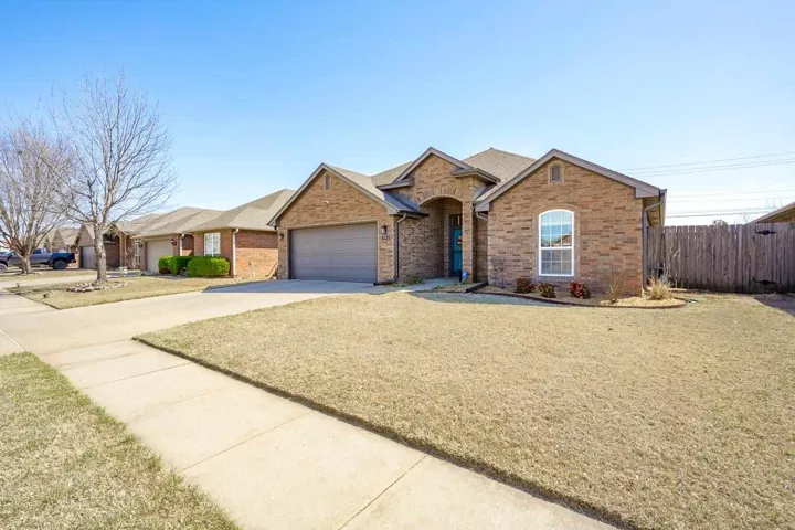 This HOME SWEET HOME is ready for new owners! Located in southwest Stillwater in the highly desirable Westpark Subdivision and in the Westwood Elementary school district. Built in 2007 by local custom builder, Todd Kraybill. Brick exterior, one level, 3 bedrooms (split arrangement), 2 full baths, 2 car garage and just over 1700 sq ft. Since 2021 updates include: the interior completely re-painted, all new flooring (Cortec Plus LVP Flooring in main living, hall, laundry room and seller will leave 3 extra unopened boxes), modern tile in bathrooms, security system, keypad for garage door, screen away storm door, new tall baseboards, new 2″ faux wood blinds, new toilets, guttering, new bath mirrors, new light fixtures, board/batten accent in entry/laundry/bar, and more! The inviting entryway leads to the open living, dining, and kitchen with windows allowing natural light and sunshine inside. The living room has a 12′ tall ceiling, corner gas log fireplace, lighted ceiling fan, and a raised brick hearth for extra seating. The kitchen offers plenty of wood cabinets/counter space, stainless appliances (Bosch dishwasher), eating bar, can lighting, and a Delta pull down faucet. The split bedroom arrangement offers privacy to the primary suite, which is located toward the back of the home and is well suited for your king size bed. The ensuite has a two-sink vanity, soaking tub, shower, TWO walk in closets, and a separate water closet. The secondary bedrooms are nice sized, have walk in closets, and ceiling fans. Additional perks of this home include – separate inside laundry room with cabinets/hanging bar, pantry, desk area, 8ft fence across back, tv mount on back porch, covered front and back porches, has had quarterly pest/lawn service, fenced backyard, updated landscaping, garage service door, some floored attic space above garage, string lights on back porch with remote, and more. Enjoy family time at the neighborhood park complete with a playground and covered picnic area, a pond, sidewalks for walking, riding bikes, or just enjoying the community. Fantastic location – just off of Hwy 51 and minutes to Oklahoma State University, I-35, shopping, and all things Stillwater. Don’t miss this clean, affordable, and move-in ready home!