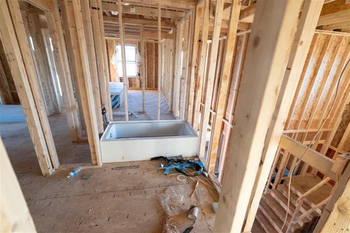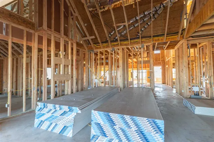 This Korbyn Bonus Room floor plan includes 3,895 Sq Ft of total living space, which includes 3,625 Sq Ft of indoor living space and 270 of outdoor living space. There is also a 690 Sq Ft, three-car garage with carriage doors and a storm shelter installed. This truly spectacular home offers 5 sizeable bedrooms, 4 full bathrooms, a half bath, 2 covered patios, an In-Law/guest suite, a mud area, a utility room featuring a utility sink, and a generous bonus room. Pass the covered front porch and the dual height entry lies the ultimate floor plan. The great room embraces wood-look tile, a spectacular cathedral ceiling with box beams and a chandelier, a luxurious 3-panel sliding door with a 4′ back patio extension, and an electric fireplace surrounded by our stacked stone detail. The great room opens to the kitchen, which boasts an oversized center island with a trash can pullout, custom-built cabinets to the ceiling, 3 CM countertops, a HUGE walk-in pantry, stainless steel appliances, including double ovens and an electric cooktop, adorning tile backsplash, stunning pendant lighting, and ample storage opportunities. The secluded primary suite features windows, our cozy carpet finish, a ceiling fan, and our sloped ceiling detail. The outstanding primary bath features a European walk-in shower, a separate sink vanity concept, a free-standing tub, a private water closet, & TWO primary walk-in closets. Bedroom #2 lies towards the front of the home and spotlights an In-Law/guest suite set up with a walk-in closet included. The second level holds the generous bonus room, a full bath, a Jack and Jill bathroom set up, and bedrooms #3, #4, and #5. Outdoor living proudly supports a corner wood-burning fireplace and a TV hookup. Other amenities for this stellar home include a 75 gallon electric water heater, R-44 insulation, an electric air handler, and so much more!