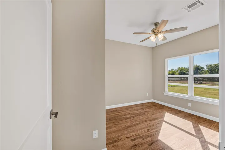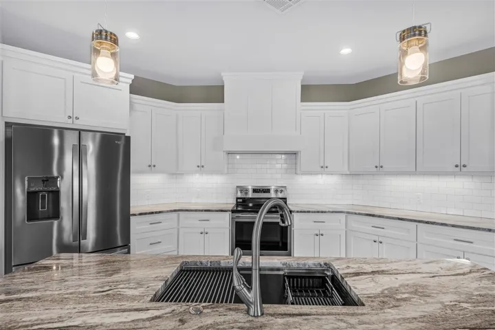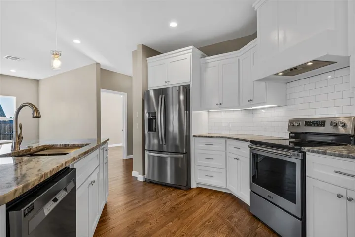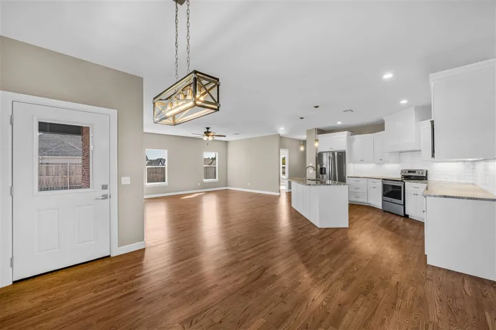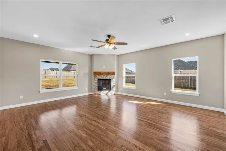 Beautifully home in highly desirable Trio Ridge. ONE STORY 5 bedroom, 2.5 bath, featuring stunning finishes throughout with open concept floor plan on a .50 acre lot with neighborhood ponds. As you enter the home you will find a great home office and timeless hardwood floors. The living room features stunning wood mantle fireplace. The main living openly flows into the kitchen and dinning room. The kitchen features granite island with bar seating. Quality detail in the cabinetry, walk in pantry and stainless steel appliances. The primary bedroom features a private ensuite featuring dual vanities, a whirlpool shower, and a separate tub. The primary bedroom has two separate walk-in closets. The other bedrooms are spacious with walk in closets. This home provides a unique room that serve many options. A must see!! The large covered back patio with privacy fence is great for hosting family and friends.