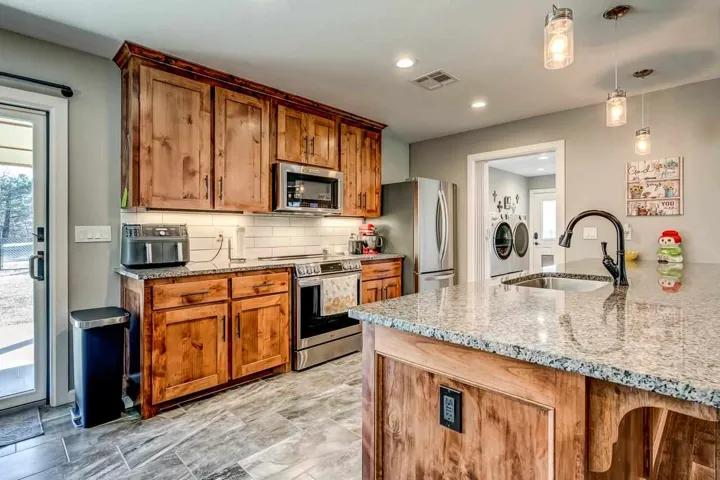 NEW LISTING – MODERN HOME WITH A GREAT SHOP! This 3 bedroom, 2 bathroom home built in 2017 sits beautifully on 1.16 acres of tree-lined property and offers everything you’ve been looking for and more! The home features an open concept living, kitchen, and dining area that’s perfect for entertaining and everyday family life. The thoughtful split bedroom arrangement provides privacy for the primary suite, and the kitchen comes complete with a brand new range. Anderson Windows throughout. Step outside through the open breezeway carport that connects the home to the spacious 2-car garage, offering covered convenience and architectural charm. But wait, there’s more! The property includes a new 22′ x 40′ shop building with electricity, giving you nearly 900 square feet of workspace for projects, hobbies, storage, or whatever your heart desires. Whether you’re a hobbyist, craftsperson, or just need serious storage space, this shop is a game-changer. The large, open fenced backyard is perfect for pets, kids, gardening, or outdoor entertaining, all surrounded by the privacy and beauty of mature trees. This property offers the perfect blend of modern living and functional outdoor space that’s hard to find. Home is total electric with very low utility bills year round. Don’t miss your chance to own this incredible property!