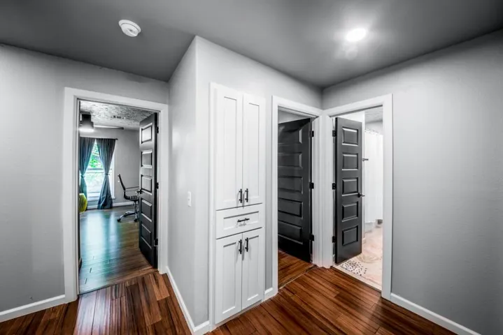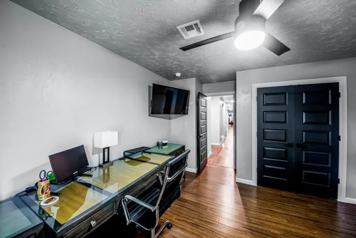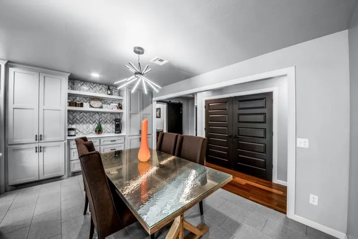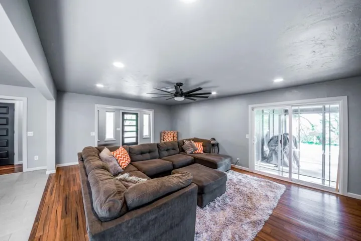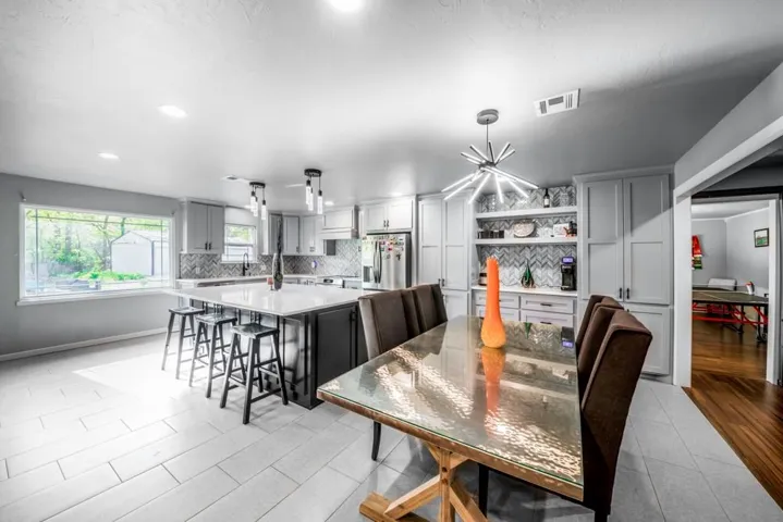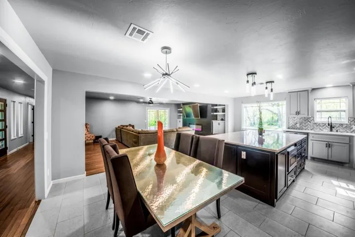 Breathtaking Modern Transformation | 2,621 SF | 4BR/2.5BA | 2-Acre Estate Welcome to 504 Tan Tara St., where mid-century roots have been reimagined through a complete, top-to-bottom renovation. This stunning 1975 Spanish Ranch Home has been transformed into a contemporary masterpiece, offering the perfect blend of spacious design and modern luxury. Contemporary Open-Concept Living The heart of this home showcases a magnificent open floor plan where the living, dining, and kitchen areas flow seamlessly together. Rich hardwood flooring contrasts beautifully with light walls and textured ceilings, creating a bright, airy atmosphere throughout. The spacious living area features a designer accent wall with a modern electric fireplace and built-in entertainment center—the perfect setting for both everyday relaxation and sophisticated entertaining. Chef’s Dream Kitchen The completely renovated kitchen is a culinary masterpiece. Pristine shaker cabinetry is complemented by sleek brushed nickel hardware, while the stunning herringbone backsplash adds visual interest. High-end stainless steel appliances, including a French door refrigerator and professional-grade range, make cooking a delight. The expansive center island with quartz countertop serves as both a functional workspace and casual dining area, illuminated by modern pendant lighting. Luxurious Primary Suite The spacious primary bedroom offers a peaceful retreat with plenty of natural light and custom built-ins that maximize space and storage. The en-suite bathroom has been completely transformed with marble-inspired tile, a contemporary shower, and thoughtful designer touches. Versatile Additional Bedrooms & Living Spaces Three additional bedrooms provide flexible space for family, guests, or home offices. Each room features the same attention to detail found throughout the home, with warm wood flooring, textured ceilings, and ample natural light. Custom built-in storage solutions offer both functionality and style. Remarkable Outdoor Living Step outside to discover the true jewel of this property—two full acres of private, fenced land. The covered patio with exposed wooden beams creates a spectacular outdoor living space perfect for year-round enjoyment. Property includes a newly installed concrete driveway, sidewalk, patios, and gravel drive which leads to a detached garage, while the expansive grounds offer endless possibilities for gardening, recreation, or future additions. This rare combination of spacious living (2,621 square feet), contemporary design, and expansive acreage offers the ultimate in modern suburban living. Don’t miss this opportunity to own a completely renovated home with room to grow, entertain, and create memories for years to come. **Owner is a Licensed Agent #OZ#8 Video Tour: https://youtu.be/BXKqng3DfqQ