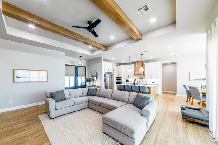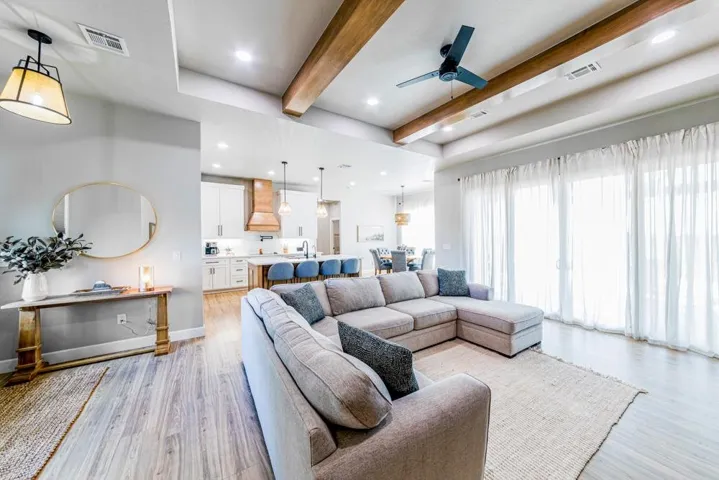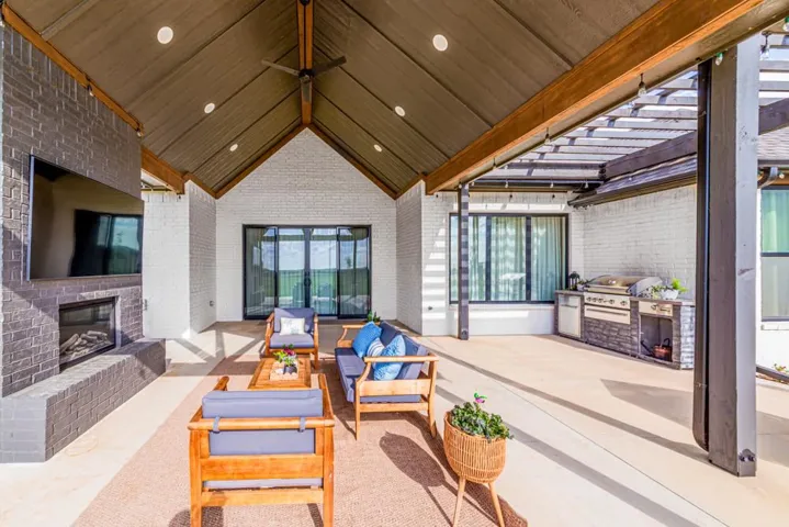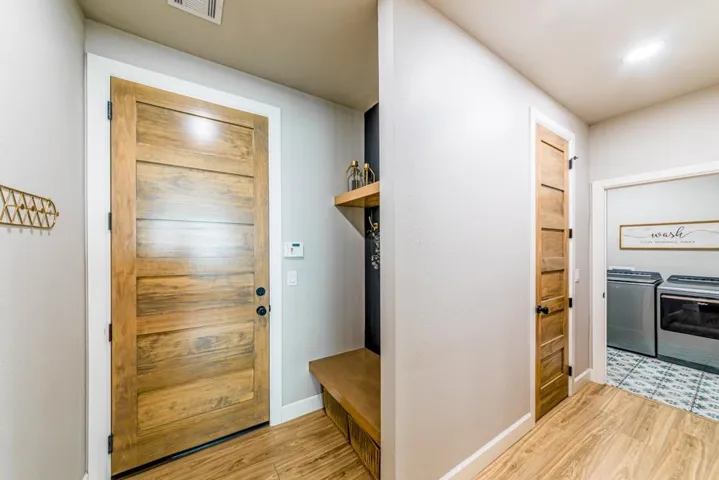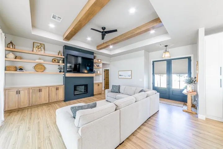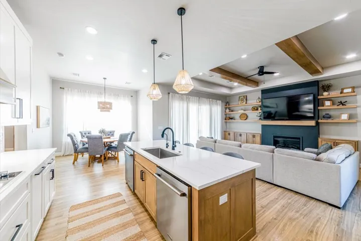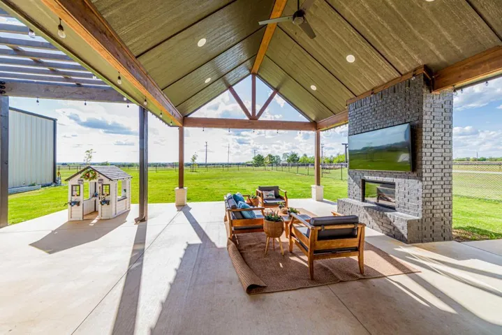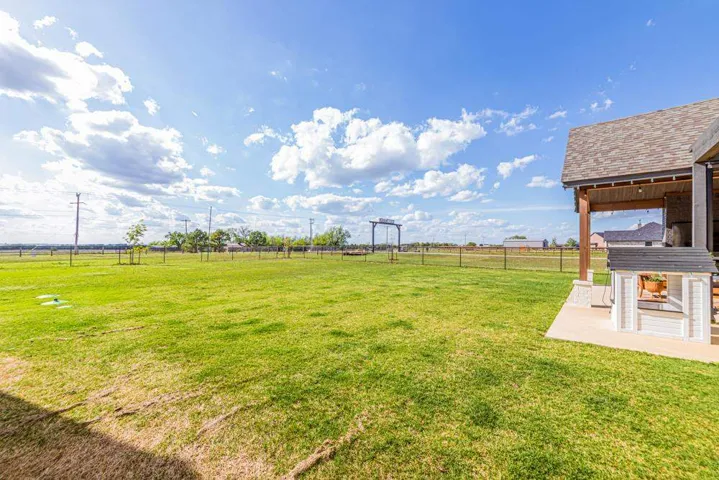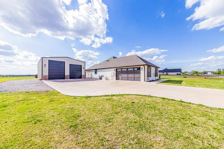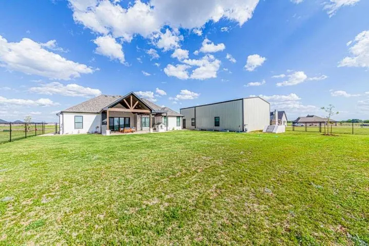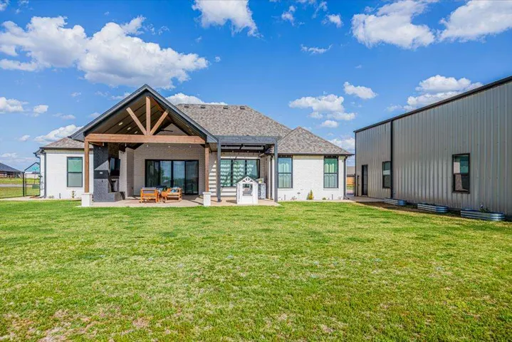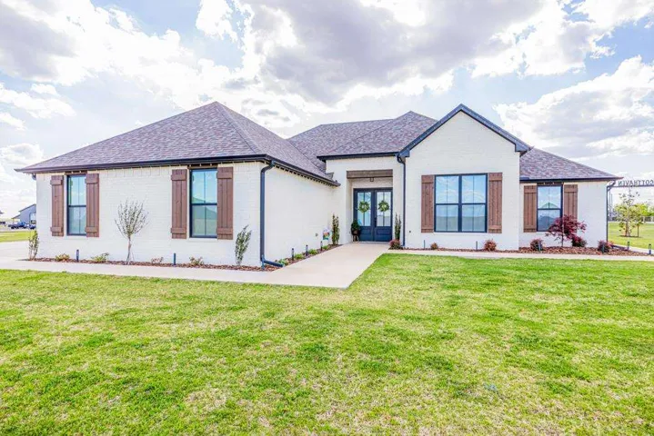 Located in the gated Scothaven Neighborhood community, this exceptional 4-bedroom, 2.5-bath custom-built home offers luxury, functionality, and unmatched attention to detail on a beautifully maintained 1.55-acre lot. Designed with quality craftsmanship throughout, the home features high-end finishes, custom wood cabinetry and doors, durable LVP flooring, and thoughtfully curated spaces ideal for both everyday living and entertaining. The chef’s kitchen is a standout, complete with two dishwashers for effortless hosting, a pot filler, and an oversized pantry providing abundant storage. Flowing seamlessly from the interior living space, a large sliding back door opens to an expansive covered patio, creating the perfect indoor-outdoor living experience. Outside, enjoy the convenience of a built-in grill plumbed to propane, all surrounded by beautiful landscaping accented by outdoor lighting set on a timer for convenience! The spacious primary suite is a true retreat, featuring a spa-like bathroom with a luxurious soaking tub, oversized walk-in shower, and a spacious primary closet with direct access to the laundry room for added convenience. Additional highlights include a 30×50 red iron shop, oversized storm shelter, generac, chain link fenced yard, class 3 impact resistant roof, and the privacy and security of gated neighborhood living. The shop includes additional laundry hookups, two 50amp plugs for RV hookup, septic dump for RV, and an 1/2 bath. Every inch of this home reflects superior design, premium materials, and exceptional care—making it a rare opportunity for buyers seeking comfort, style, and lasting quality.